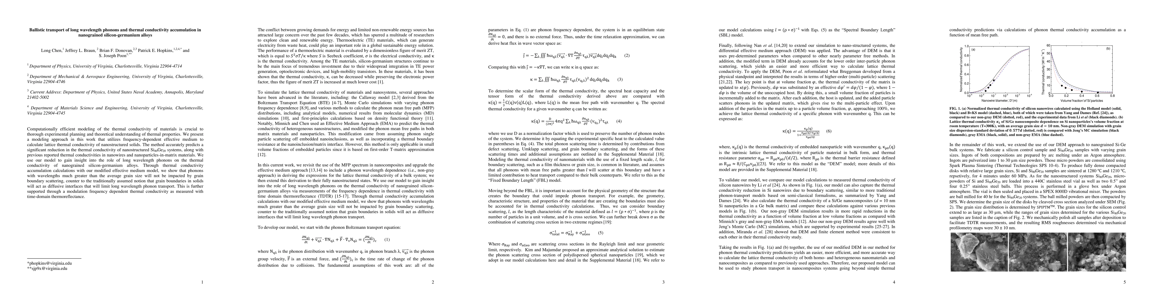 This paper presents a computational model for predicting the thermal conductivity of nanostructured silicon-germanium alloys, revealing that phonons with wavelengths longer than the grain size are not hindered by grain boundary scattering. This challenges the conventional belief that grain boundaries impede long wavelength phonon transport, as demonstrated through frequency-dependent thermal conductivity measurements.