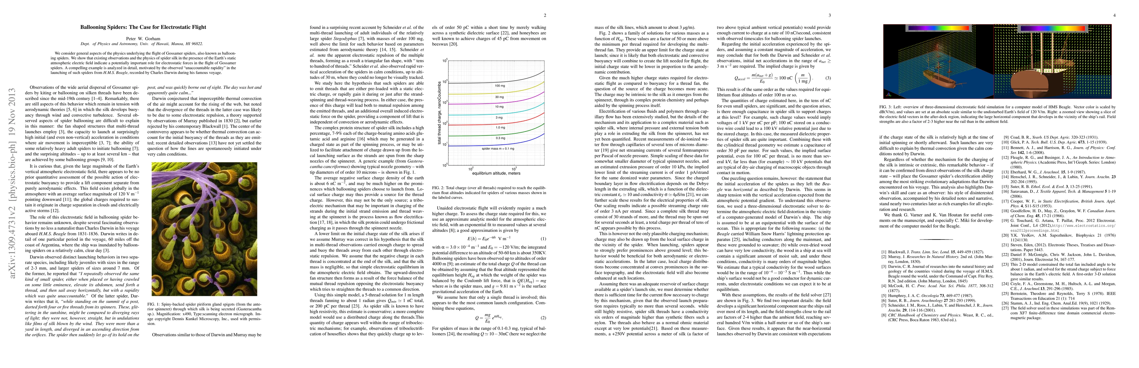 We consider general aspects of the physics underlying the flight of Gossamer spiders, also known as ballooning spiders. We show that existing observations and the physics of spider silk in the presence of the Earth's static atmospheric electric field indicate a potentially important role for electrostatic forces in the flight of Gossamer spiders. A compelling example is analyzed in detail, motivated by the observed "unaccountable rapidity" in the launching of such spiders from H.M.S. Beagle, recorded by Charles Darwin during his famous voyage.