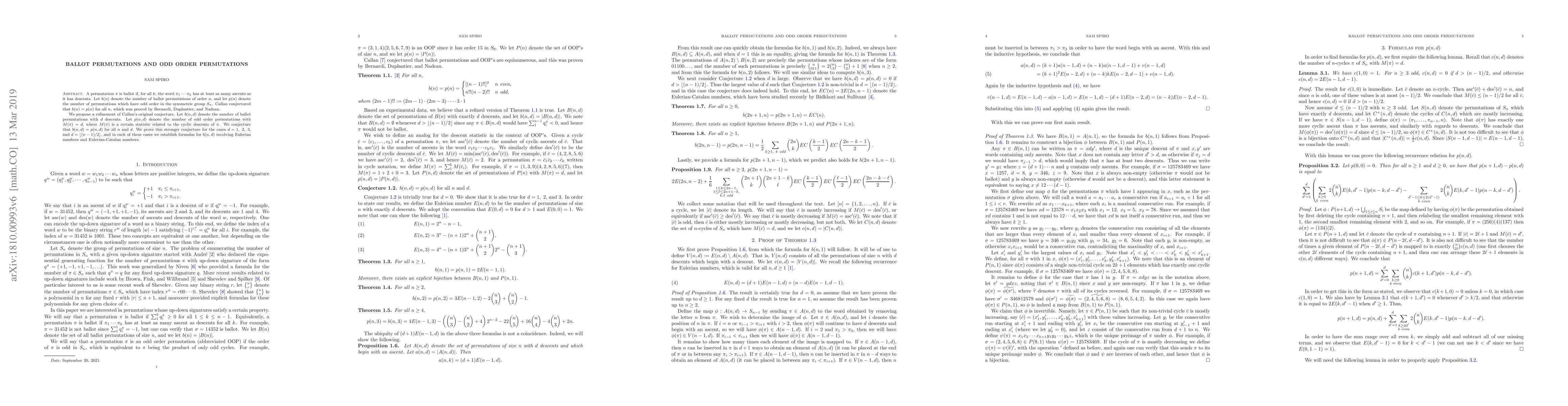 This paper refines Callan's conjecture by proposing that the number of ballot permutations with $d$ descents equals the number of odd order permutations with $d$ cyclic descents. The conjecture is proven for specific cases, and formulas involving Eulerian numbers and Eulerian-Catalan numbers are established for these cases.