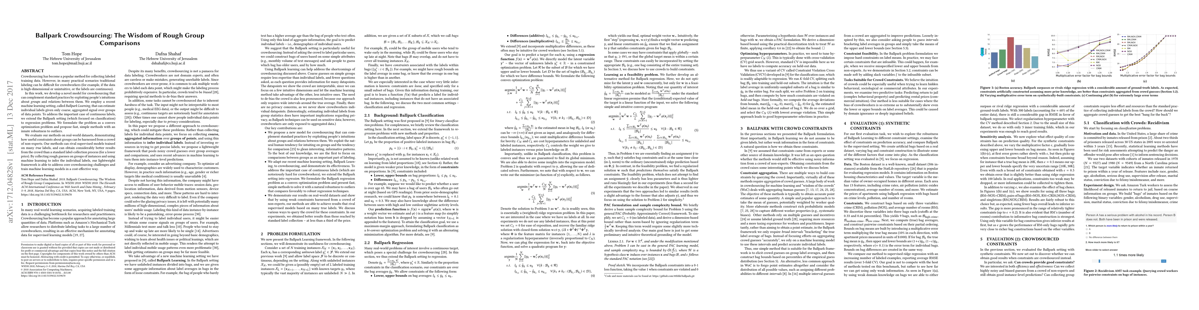 Crowdsourcing has become a popular method for collecting labeled training data. However, in many practical scenarios traditional labeling can be difficult for crowdworkers (for example, if the data is high-dimensional or unintuitive, or the labels are continuous). In this work, we develop a novel model for crowdsourcing that can complement standard practices by exploiting people's intuitions about groups and relations between them. We employ a recent machine learning setting, called Ballpark Learning, that can estimate individual labels given only coarse, aggregated signal over groups of data points. To address the important case of continuous labels, we extend the Ballpark setting (which focused on classification) to regression problems. We formulate the problem as a convex optimization problem and propose fast, simple methods with an innate robustness to outliers. We evaluate our methods on real-world datasets, demonstrating how useful constraints about groups can be harnessed from a crowd of non-experts. Our methods can rival supervised models trained on many true labels, and can obtain considerably better results from the crowd than a standard label-collection process (for a lower price). By collecting rough guesses on groups of instances and using machine learning to infer the individual labels, our lightweight framework is able to address core crowdsourcing challenges and train machine learning models in a cost-effective way.