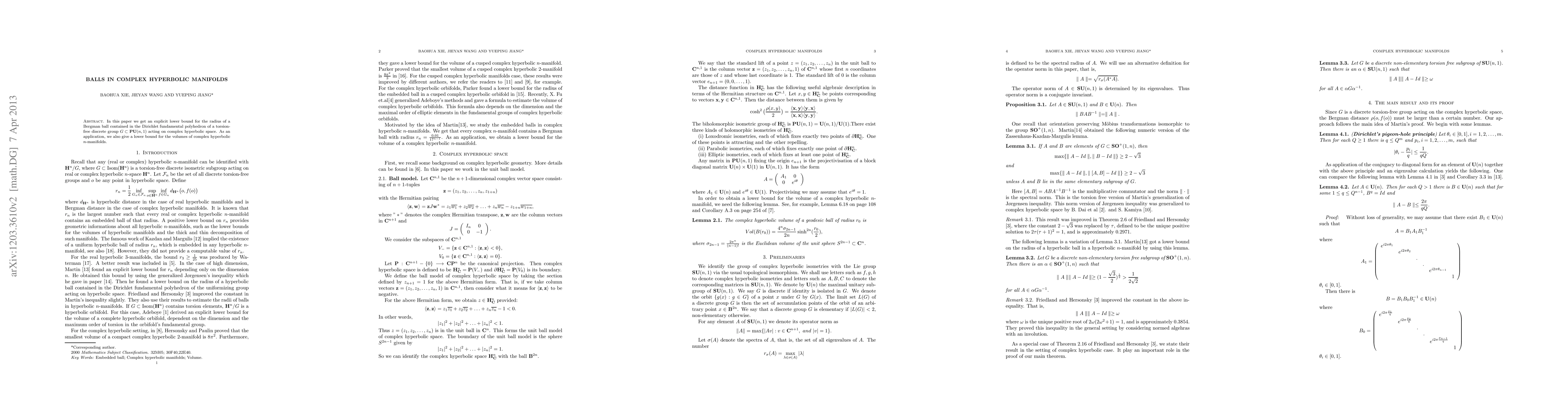 This paper provides an explicit lower bound for the radius of a Bergman ball within the Dirichlet fundamental polyhedron of a torsion-free discrete group acting on complex hyperbolic space, establishing a lower bound for the volume of all complex hyperbolic n-manifolds.