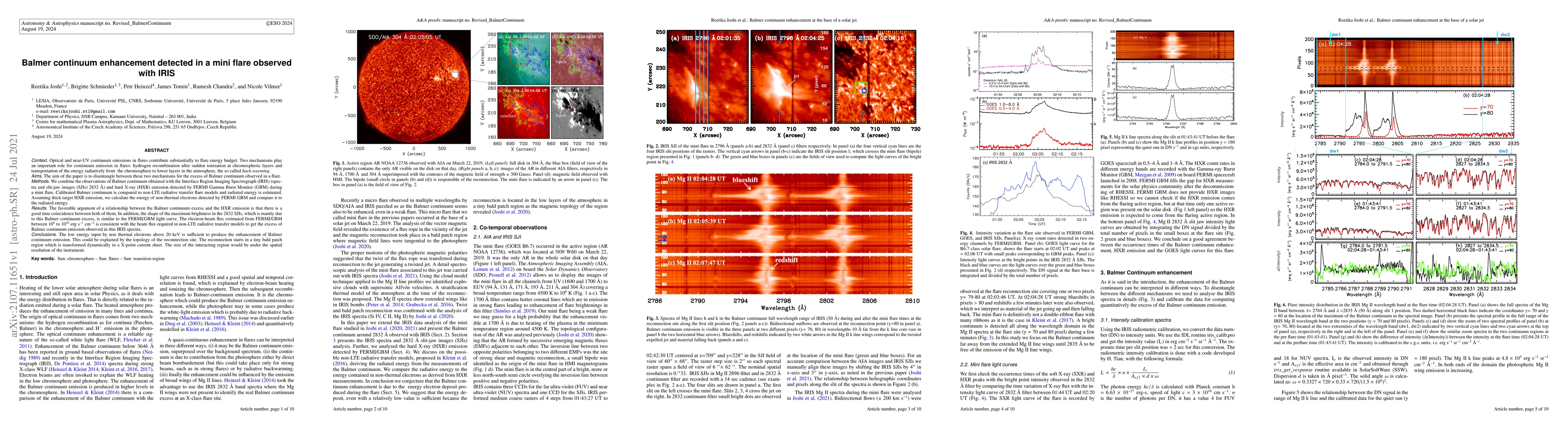 This paper investigates the Balmer continuum enhancement in a mini flare observed with IRIS, attributing it to non-thermal electron interactions. The study finds a good time correlation between the Balmer continuum excess and hard X-ray emission from FERMI GBM, suggesting that low-energy non-thermal electrons can sufficiently enhance the Balmer continuum, likely due to the dynamic topology of the reconnection site.