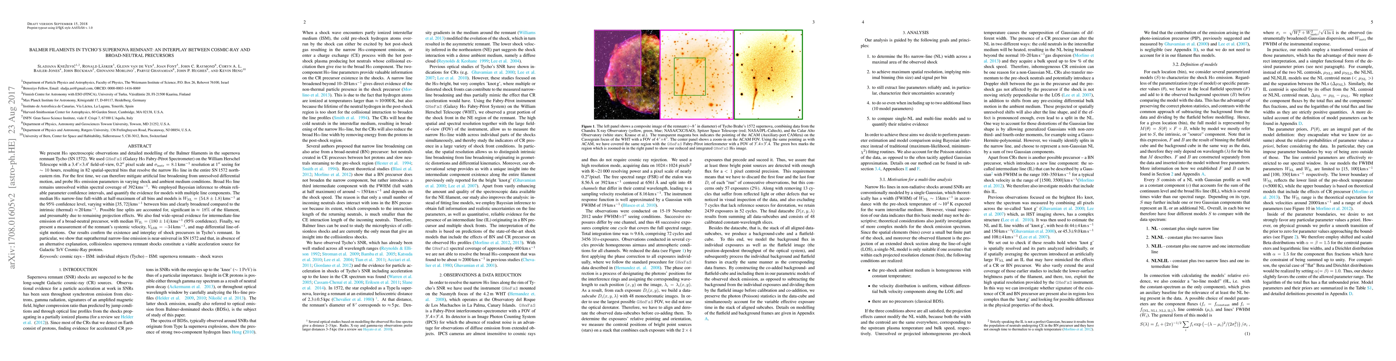 This paper presents H$\alpha$ spectroscopic observations of Balmer filaments in Tycho's supernova remnant, revealing the interplay of cosmic-ray and broad-neutral precursors. The study finds evidence for shock precursors and suggests that Tycho's remnant shocks may accelerate Galactic TeV Cosmic-Ray protons.