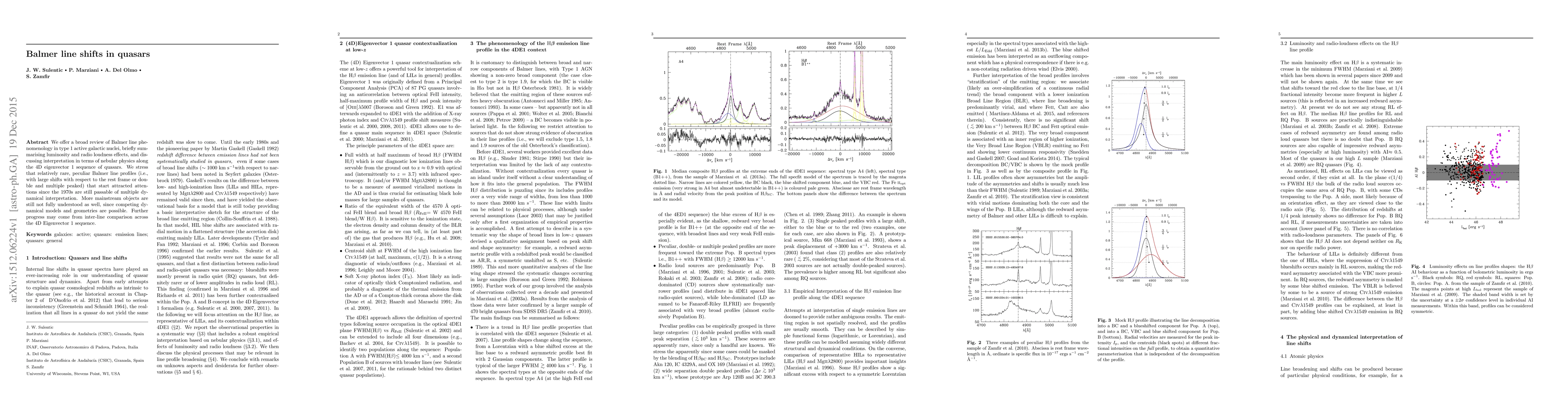 We offer a broad review of Balmer line phenomenology in type 1 active galactic nuclei, briefly sum- marising luminosity and radio loudness effects, and discussing interpretation in terms of nebular physics along the 4D eigenvector 1 sequence of quasars. We stress that relatively rare, peculiar Balmer line profiles (i.e., with large shifts with respect to the rest frame or double and multiple peaked) that start attracted attentions since the 1970s are still passable of multiple dynamical interpretation. More mainstream objects are still not fully understood as well, since competing dynamical models and geometries are possible. Further progress may come from inter-line comparison across the 4D Eigenvector 1 sequence.