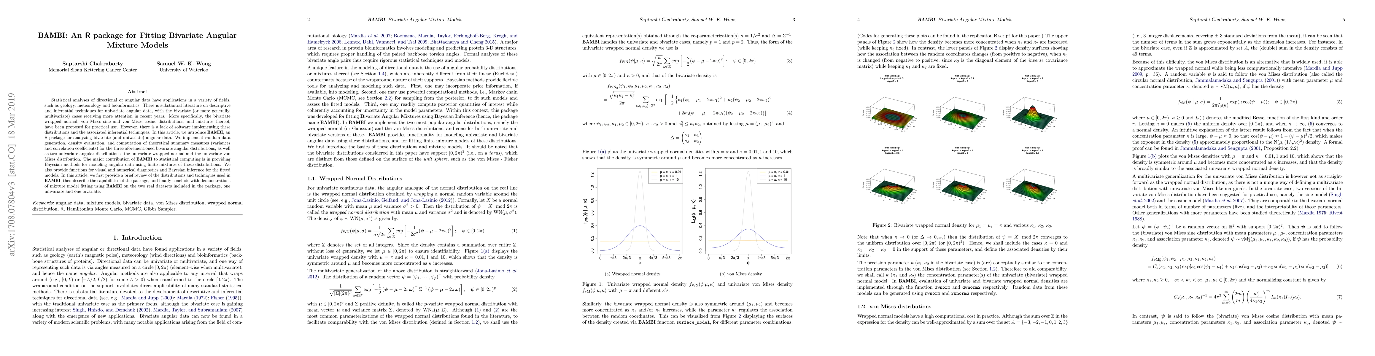 BAMBI is an R package designed to fit bivariate angular mixture models, addressing the lack of software for analyzing angular data. It offers functions for generating random data, evaluating densities, and computing summary measures for various angular distributions, with a focus on Bayesian methods for finite mixture modeling.