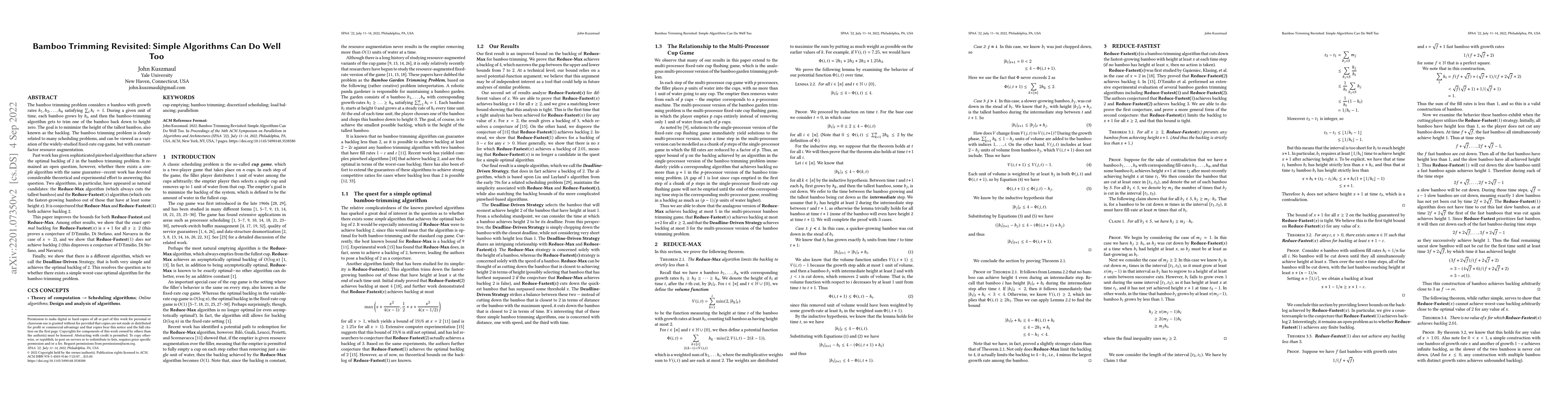 This paper revisits the bamboo trimming problem, showing that the optimal backlog of 2 can be achieved by simple algorithms. It disproves previous conjectures about the Reduce-Fastest and Reduce-Max algorithms and introduces the Deadline-Driven Strategy, a straightforward algorithm that optimally minimizes the tallest bamboo's height.