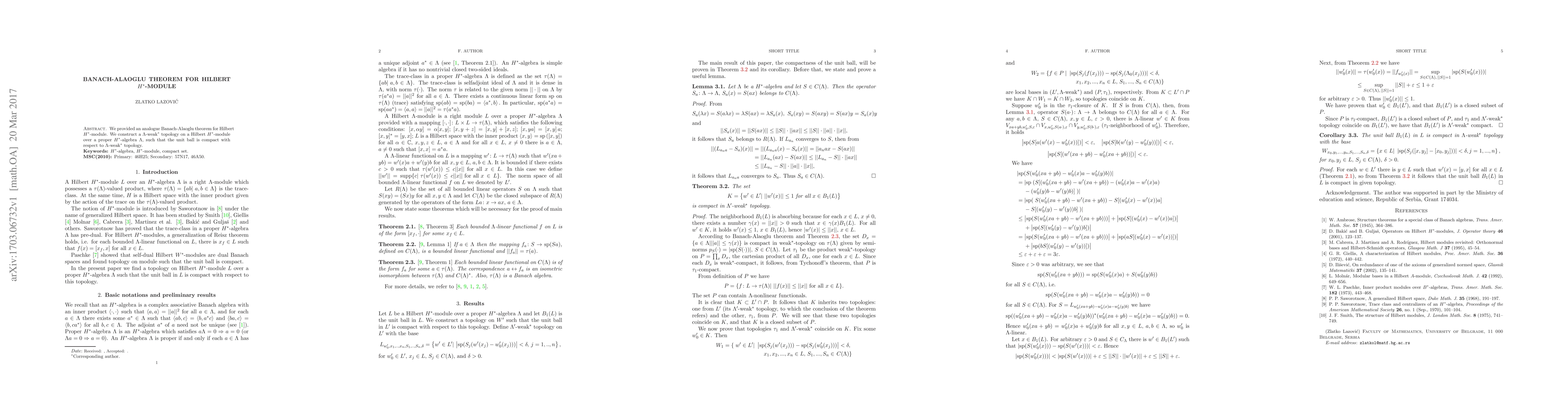 The paper establishes a Banach-Alaoglu theorem for Hilbert H*-modules, providing a topology on the module that makes the unit ball compact.