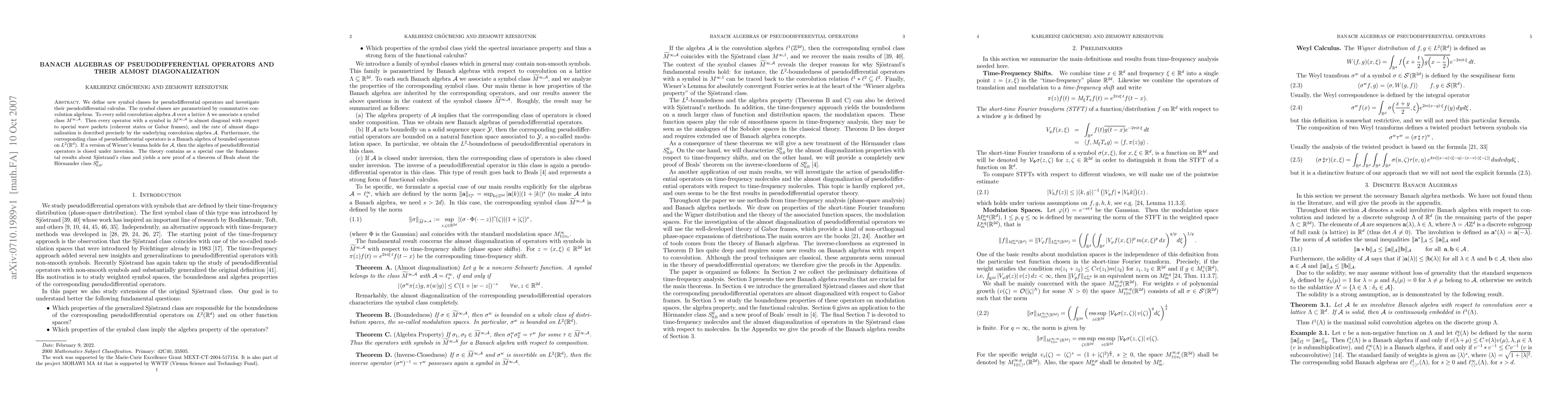 This paper introduces new symbol classes for pseudodifferential operators linked to commutative convolution algebras, showing that operators with these symbols are almost diagonalizable with respect to specific wave packets. The rate of this diagonalization is precisely determined by the underlying convolution algebra, and the associated pseudodifferential operators form a Banach algebra on $L^2$.