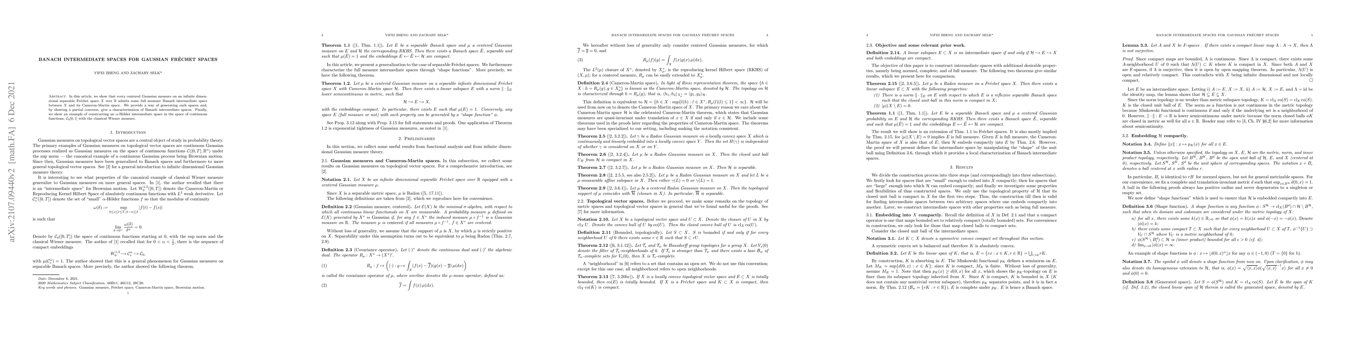 This paper demonstrates that any centered Gaussian measure on an infinite-dimensional separable Fréchet space possesses a Banach intermediate space between the space and its Cameron-Martin space. It also provides a method for generating such spaces and characterizes them through a partial converse.