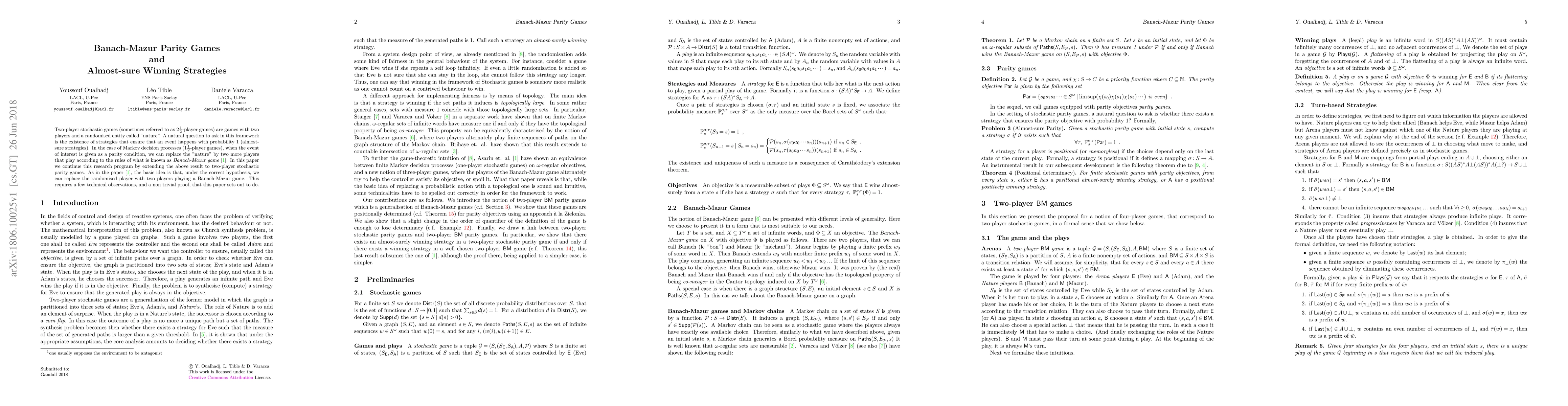 This paper investigates the existence of almost-sure winning strategies in two-player stochastic parity games, extending previous results on Markov decision processes. It introduces Banach-Mazur parity games to replace the randomized element, requiring technical observations and a non-trivial proof to establish the desired outcomes.