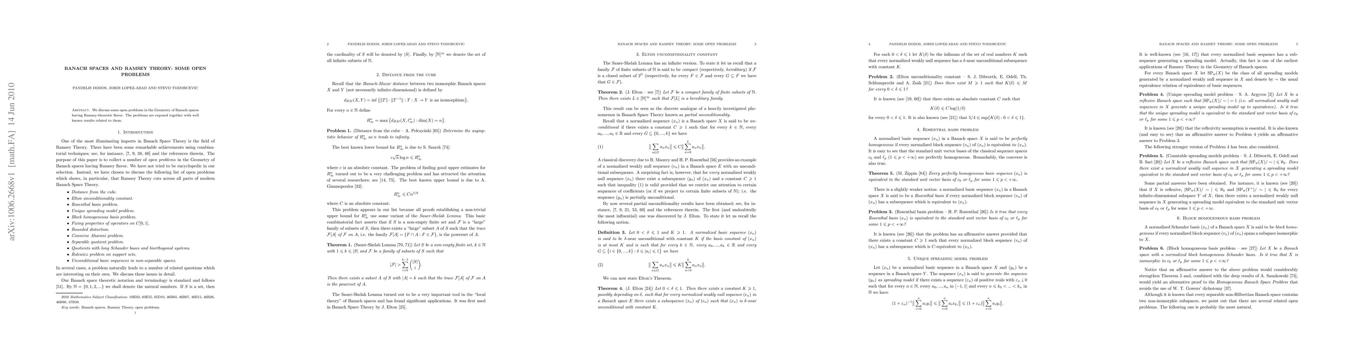 Summary: This paper explores unresolved questions in the geometry of Banach spaces that are inspired by Ramsey theory, and it presents relevant background results to contextualize these open problems.