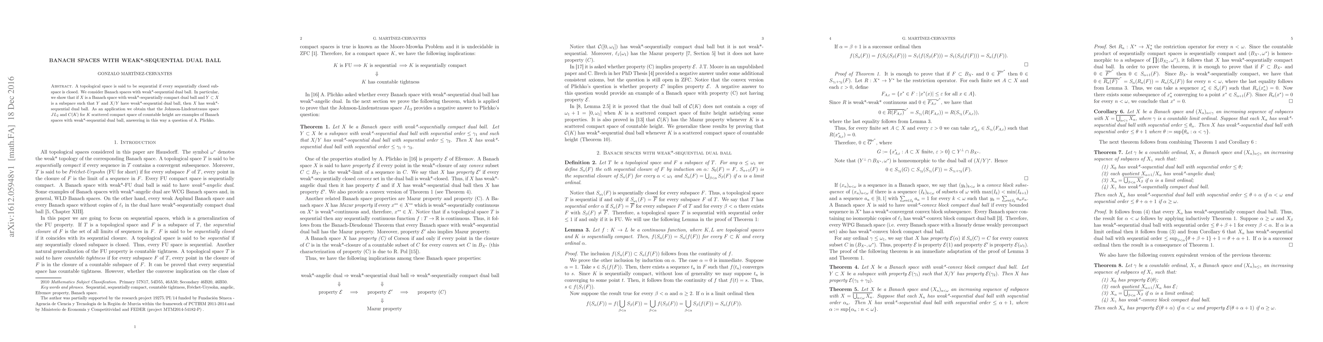 This paper explores Banach spaces with weak*-sequential dual balls, proving that the property extends to certain subspaces and quotient spaces. It demonstrates that the Johnson-Lindenstrauss space and $C(K)$ for scattered compact spaces of countable height exhibit this property, resolving a question posed by A. Plichko.