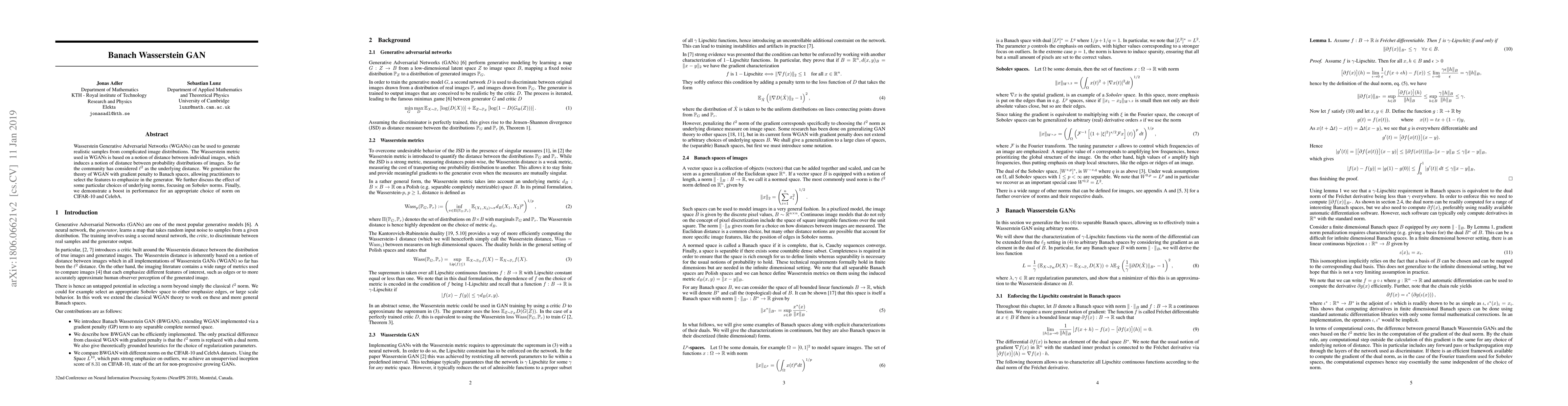 Wasserstein Generative Adversarial Networks (WGANs) can be used to generate realistic samples from complicated image distributions. The Wasserstein metric used in WGANs is based on a notion of distance between individual images, which induces a notion of distance between probability distributions of images. So far the community has considered $\ell^2$ as the underlying distance. We generalize the theory of WGAN with gradient penalty to Banach spaces, allowing practitioners to select the features to emphasize in the generator. We further discuss the effect of some particular choices of underlying norms, focusing on Sobolev norms. Finally, we demonstrate a boost in performance for an appropriate choice of norm on CIFAR-10 and CelebA.