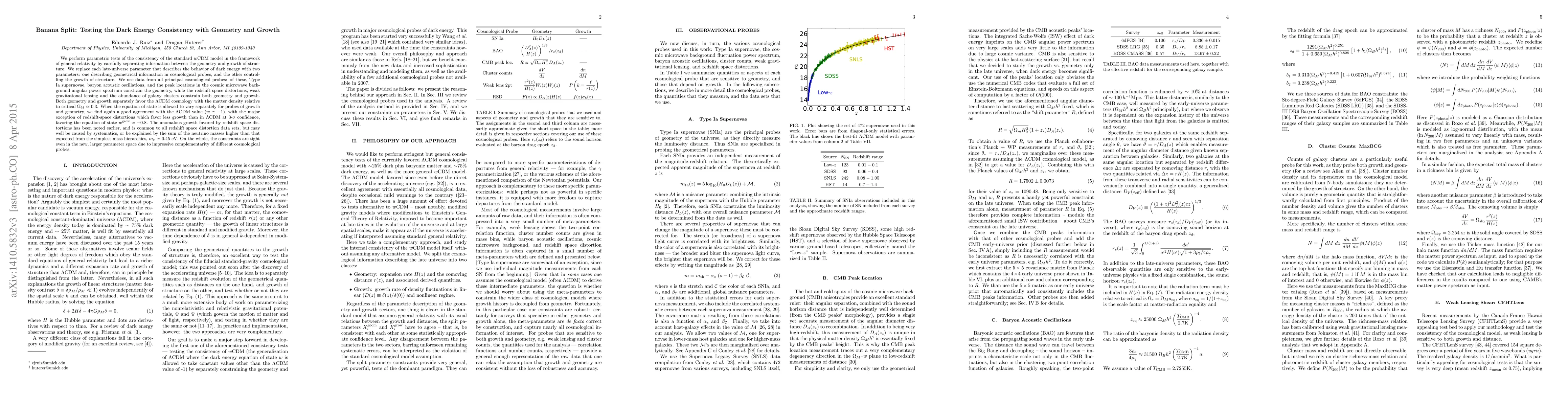 We perform parametric tests of the consistency of the standard $w$CDM model in the framework of general relativity by carefully separating information between the geometry and growth of structure. We replace each late-universe parameter that describes the behavior of dark energy with two parameters: one describing geometrical information in cosmological probes, and the other controlling the growth of structure. We use data from all principal cosmological probes: of these, Type Ia supernovae, baryon acoustic oscillations, and the peak locations in the cosmic microwave background angular power spectrum constrain the geometry, while the redshift space distortions, weak gravitational lensing and the abundance of galaxy clusters constrain both geometry and growth. Both geometry and growth separately favor the $\Lambda$CDM cosmology with the matter density relative to critical $\Omega_M\simeq 0.3$. When the equation of state is allowed to vary separately for probes of growth and geometry, we find again a good agreement with the $\Lambda$CDM value ($w\simeq -1$), with the major exception of redshift-space distortions which favor less growth than in $\Lambda$CDM at 3-$\sigma$ confidence, favoring the equation of state $w^{\rm grow}\simeq -0.8$. The anomalous growth favored by redshift space distortions has been noted earlier, and is common to all redshift space distortion data sets, but may well be caused by systematics, or be explained by the sum of the neutrino masses higher than that expected from the simplest mass hierarchies, $m_\nu \simeq 0.45$ eV. On the whole, the constraints are tight even in the new, larger parameter space due to impressive complementarity of different cosmological probes.