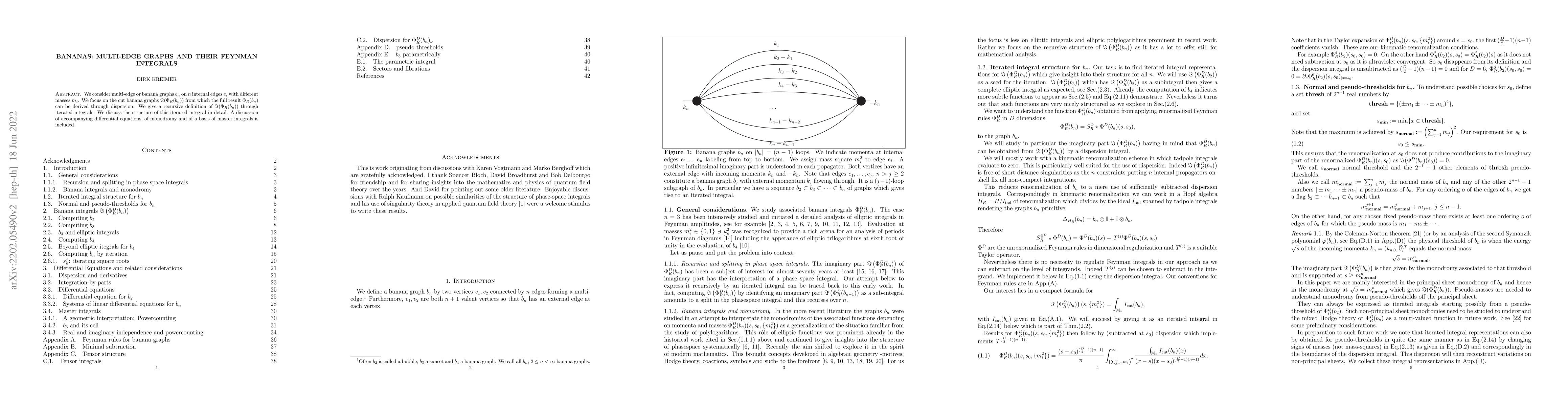 This paper explores multi-edge "banana" graphs and their associated Feynman integrals, providing a recursive definition for the imaginary part of the full result through iterated integrals. It also discusses the underlying differential equations, monodromy, and a basis for master integrals.