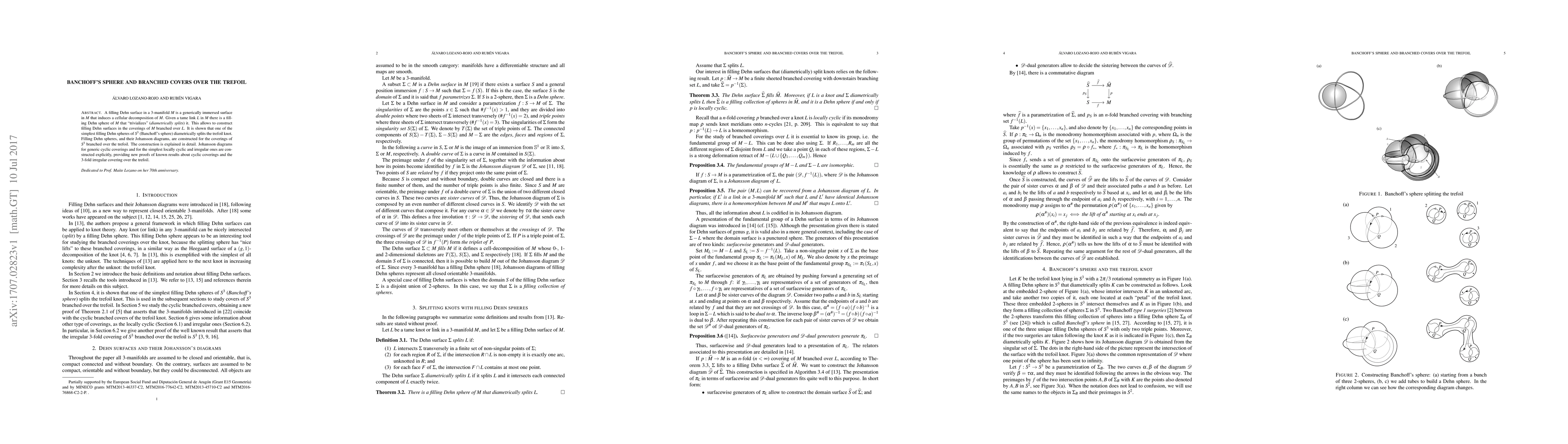 A filling Dehn surface in a $3$-manifold $M$ is a generically immersed surface in $M$ that induces a cellular decomposition of $M$. Given a tame link $L$ in $M$ there is a filling Dehn sphere of $M$ that "trivializes" (\emph{diametrically splits}) it. This allows to construct filling Dehn surfaces in the coverings of $M$ branched over $L$. It is shown that one of the simplest filling Dehn spheres of $S^3$ (Banchoff's sphere) diametrically splits the trefoil knot. Filling Dehn spheres, and their Johansson diagrams, are constructed for the coverings of $S^3$ branched over the trefoil. The construction is explained in detail. Johansson diagrams for generic cyclic coverings and for the simplest locally cyclic and irregular ones are constructed explicitly, providing new proofs of known results about cyclic coverings and the $3$-fold irregular covering over the trefoil.