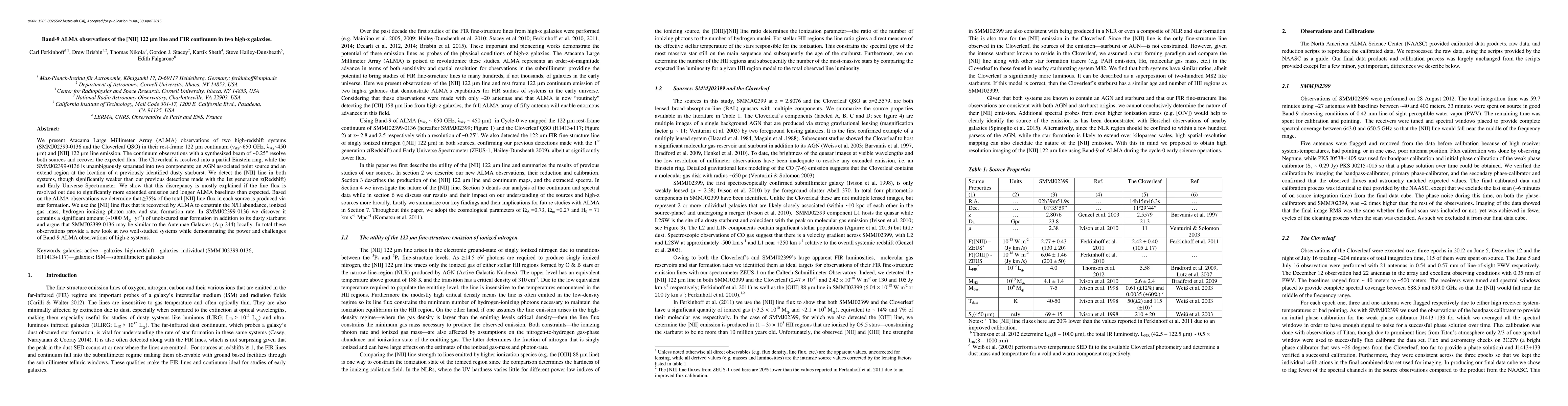 This paper presents ALMA observations of two high-redshift galaxies, SMMJ02399-0136 and the Cloverleaf QSO, revealing their [NII] 122 micron line and FIR continuum. The study finds that over 75% of the [NII] line flux is due to star formation, with SMMJ02399-0136 showing significant unobscured star formation activity.