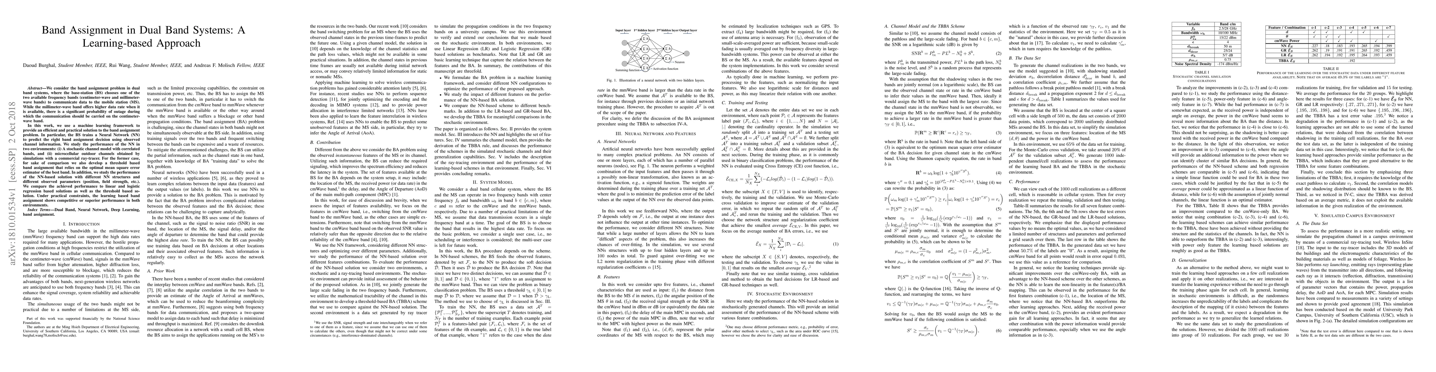 A machine learning approach is used to predict band assignment decisions in dual band systems for efficient communication, outperforming traditional methods in both simulated and real-world scenarios.