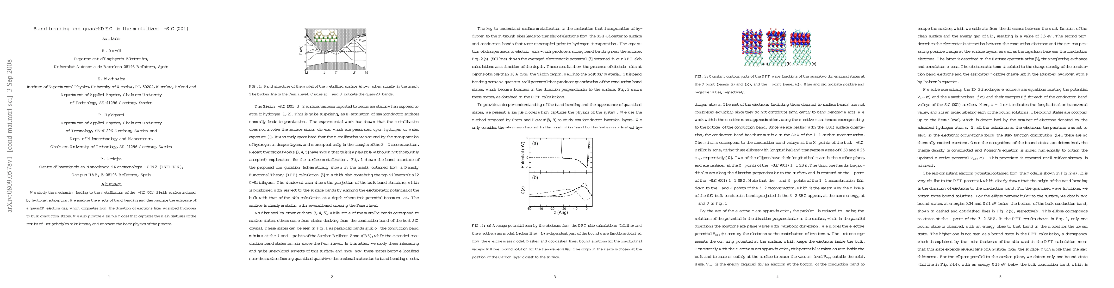 The research investigates the metallization of Si-rich $eta$-SiC(001) surface due to hydrogen adsorption, revealing band bending and a quasi-2D electron gas formed by electron donation from hydrogen to bulk conduction states. A simple model is proposed to explain these phenomena.