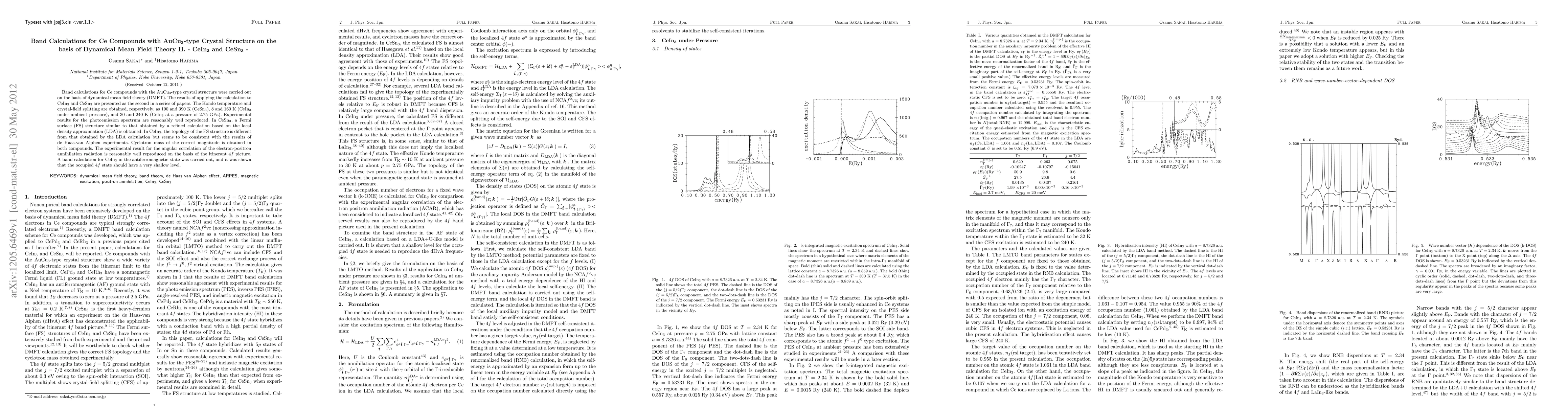 Band calculations for Ce compounds with the AuCu$_{3}$-type crystal structure were carried out on the basis of dynamical mean field theory (DMFT). The results of applying the calculation to CeIn$_{3}$ and CeSn$_{3}$ are presented as the second in a series of papers. The Kondo temperature and crystal-field splitting are obtained, respectively, as 190 and 390 K (CeSn$_{3}$), 8 and 160 K (CeIn$_{3}$ under ambient pressure), and 30 and 240 K (CeIn$_{3}$ at a pressure of 2.75 GPa). Experimental results for the photoemission spectrum are reasonably well reproduced. In CeSn$_{3}$, a Fermi surface (FS) structure similar to that obtained by a refined calculation based on the local density approximation (LDA) is obtained. In CeIn$_{3}$, the topology of the FS structure is different from that obtained by the LDA calculation but seems to be consistent with the results of de Haas-van Alphen experiments. Cyclotron mass of the correct magnitude is obtained in both compounds. The experimental result for the angular correlation of the electron-positron annihilation radiation is reasonably well reproduced on the basis of the itinerant 4f picture. A band calculation for CeIn$_{3}$ in the antiferromagnetic state was carried out, and it was shown that the occupied 4f state should have a very shallow level.