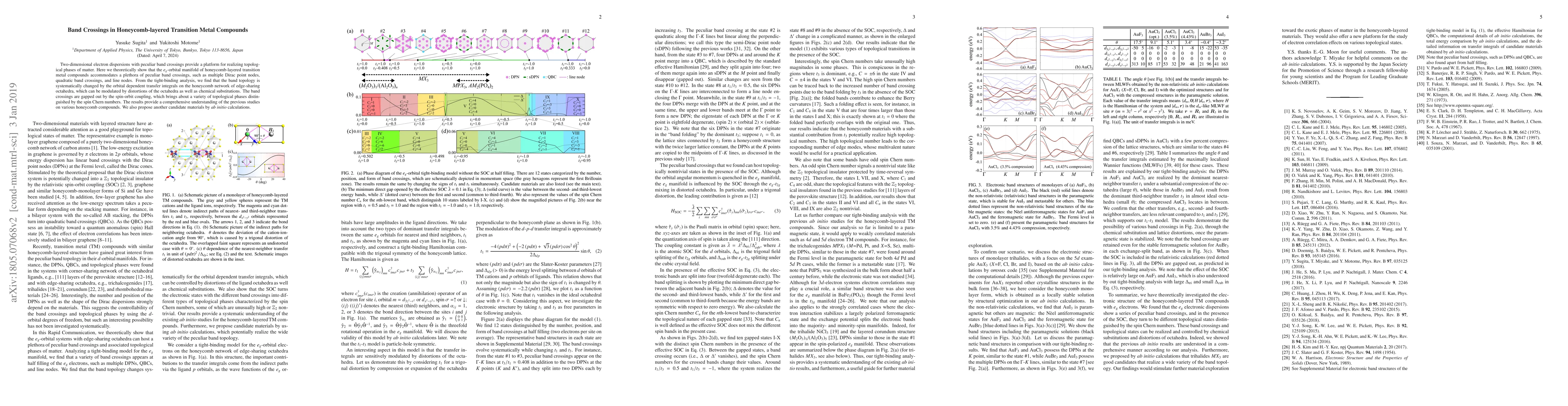 Researchers discovered that honeycomb-layered transition metal compounds can exhibit multiple types of band crossings, including Dirac points and line nodes, which can lead to various topological phases. The band topology is influenced by distortions of the octahedral structure and spin-orbit coupling.