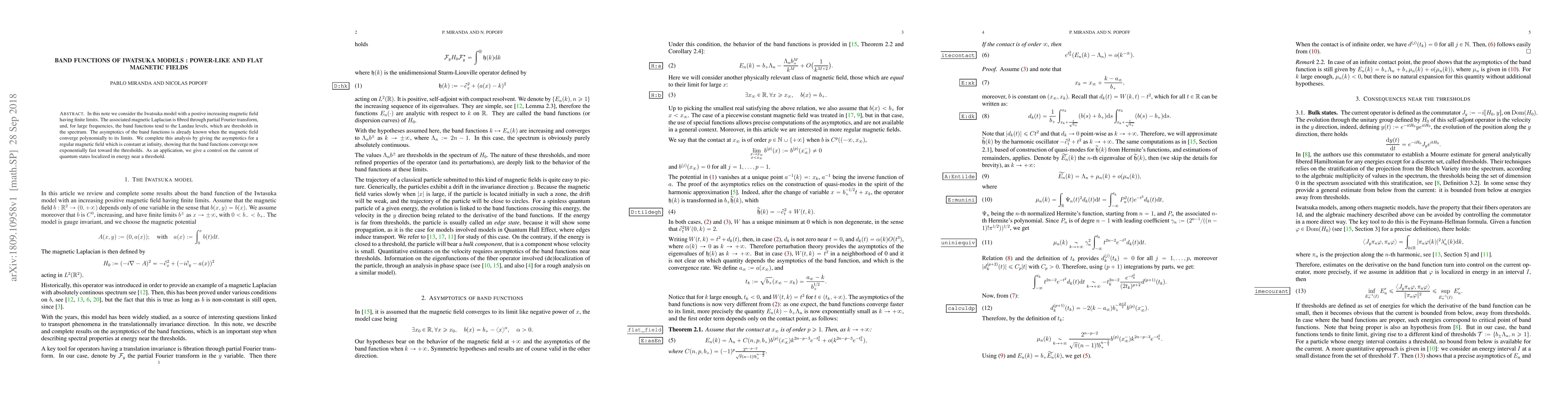 In this note we consider the Iwatsuka model with a postive increasing magnetic field having finite limits. The associated magnetic Laplacian is fibred through partial Fourier transform, and, for large frequencies, the band functions tend to the Landau levels, which are thresholds in the spectrum. The asymptotics of the band functions is already known when the magnetic field converge polynomially to its limits. We complete this analysis by giving the asymptotics for a regular magnetic field which is constant at infinity, showing that the band functions converge now exponentially fast toward the thresholds. As an application, we give a control on the current of quantum states localized in energy near a threshold.