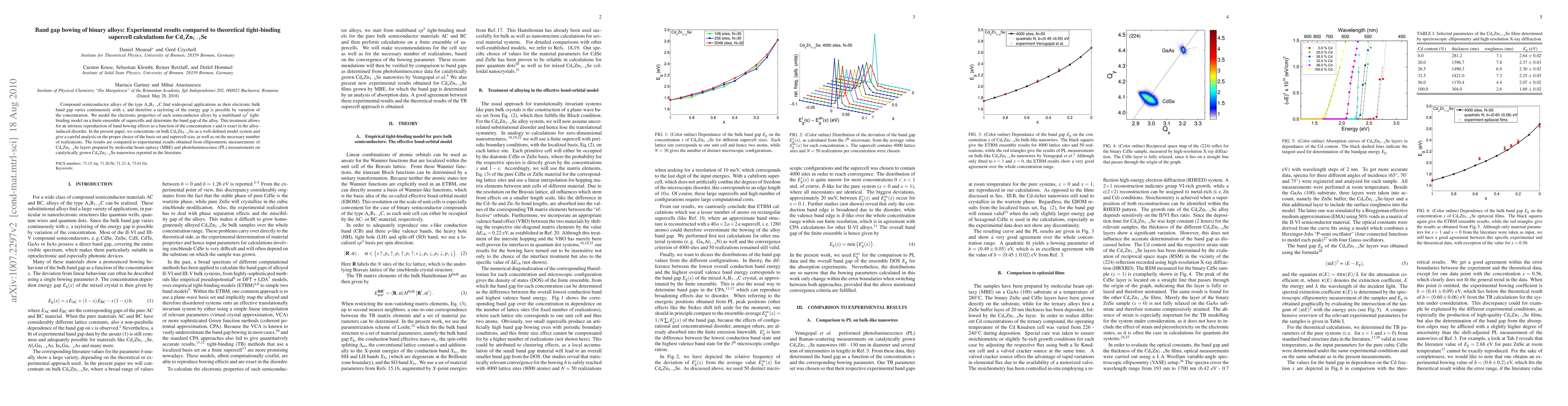 This paper investigates the band gap bowing in CdZnSe alloys using tight-binding supercell calculations and compares these theoretical results with experimental data from ellipsometry and photoluminescence measurements. The study highlights the importance of basis set and supercell size in accurately modeling the band gap variation with composition.