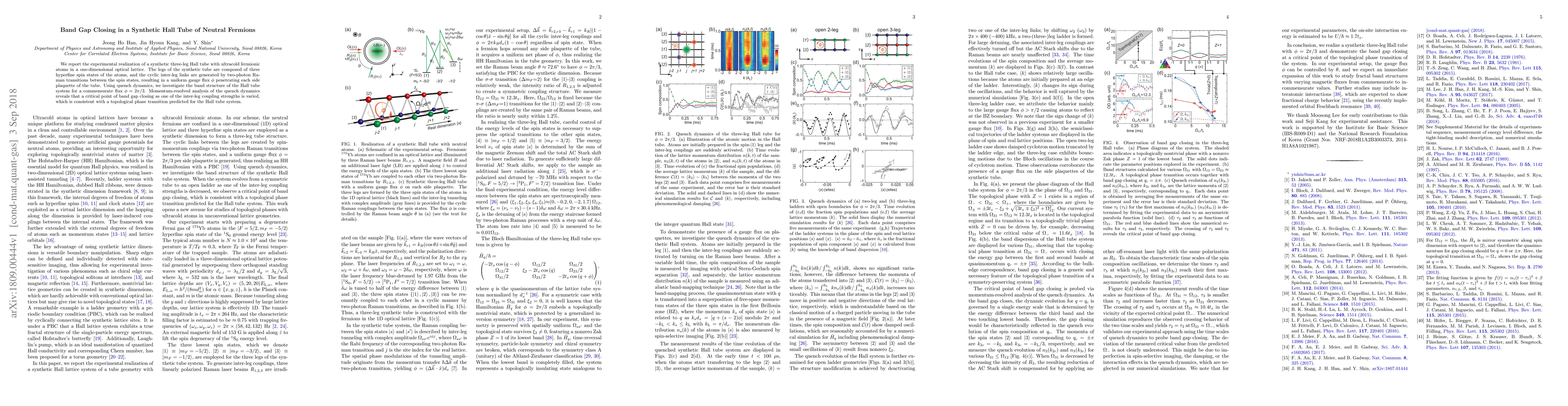 This paper reports the experimental realization of a synthetic three-leg Hall tube with ultracold fermions, showing a topological phase transition evidenced by band gap closing under varying inter-leg coupling strengths, consistent with theoretical predictions.