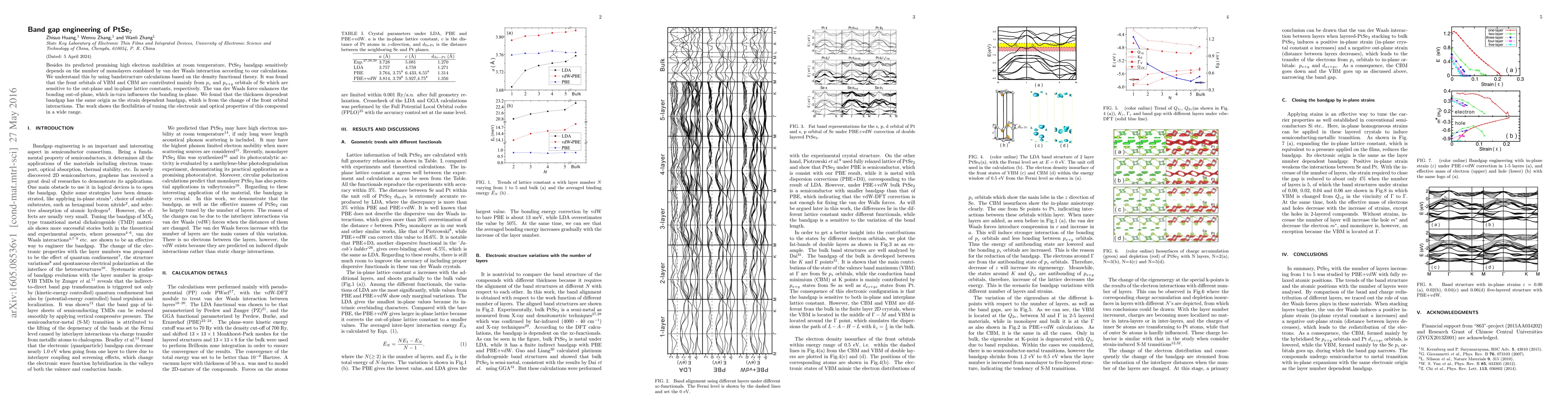 This paper investigates the band gap engineering of PtSe2, revealing that its bandgap varies with the number of monolayers due to van der Waals interactions. Density functional theory calculations show that the bandgap changes are driven by the interactions between Se pz and px+y orbitals, influenced by lattice constants and enhanced by van der Waals forces, demonstrating the potential for tuning PtSe2's electronic and optical properties.