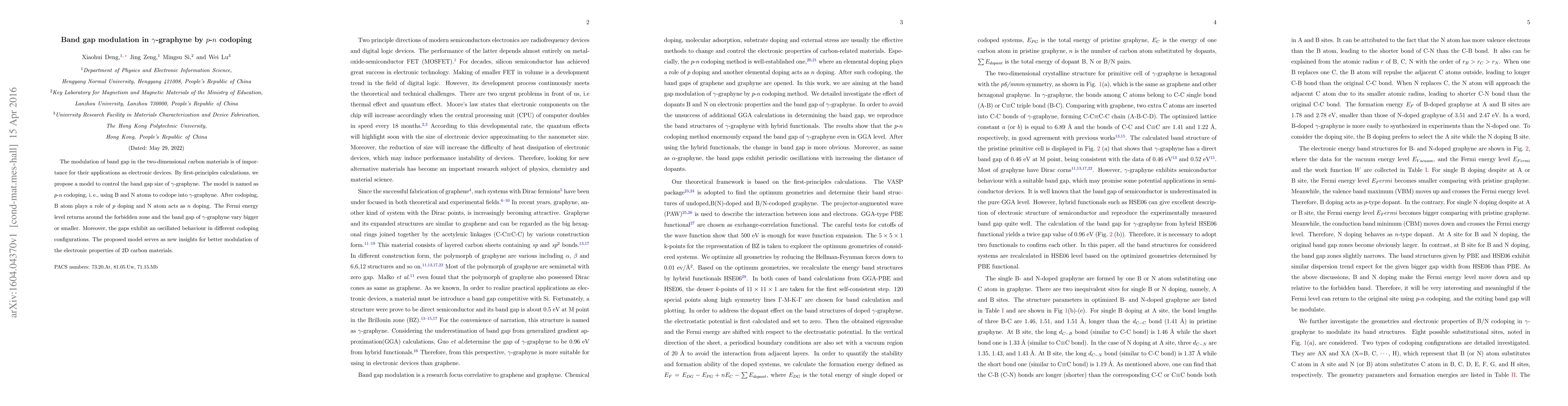 This paper proposes a p-n codoping method using B and N atoms to modulate the band gap in γ-graphyne, a two-dimensional carbon material, through first-principles calculations. The codoping results in an oscillation in band gap size, offering new insights for tailoring the electronic properties of 2D carbon materials.