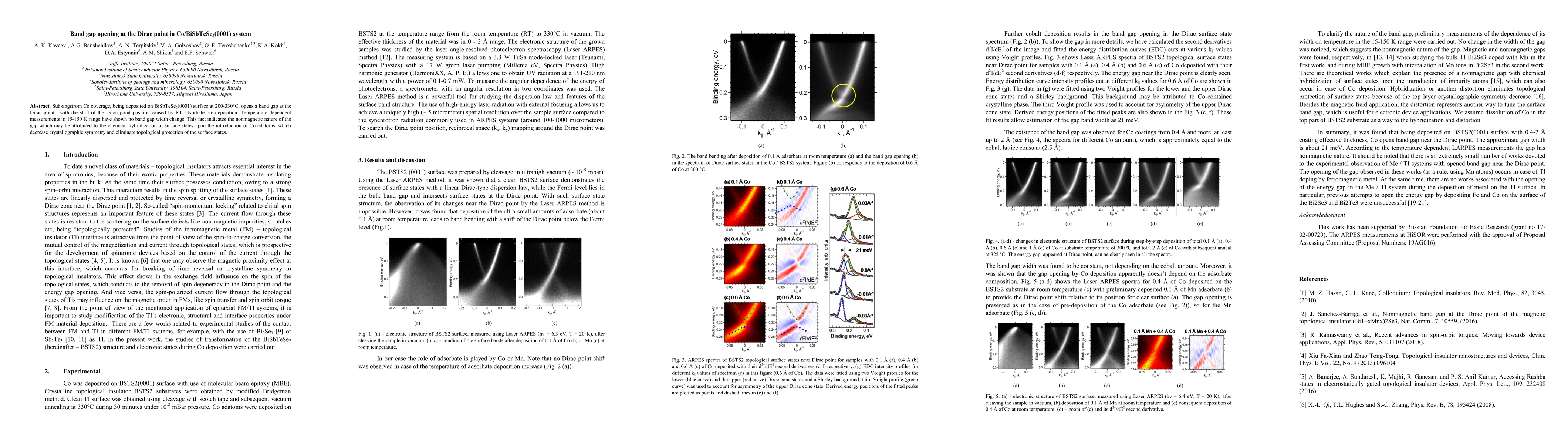 Sub-angstrom Co coverage, being deposited on BiSbTeSe2(0001) surface at 200-330 C, opens a band gap at the Dirac point, with the shift of the Dirac point position caused by RT adsorbate pre-deposition. Temperature dependent measurements in 15-150 K range have shown no band gap width change. This fact indicates the nonmagnetic nature of the gap which may be attributed to the chemical hybridization of surface states upon the introduction of Co adatoms, which decrease crystallographic symmetry and eliminate topological protection of the surface states.