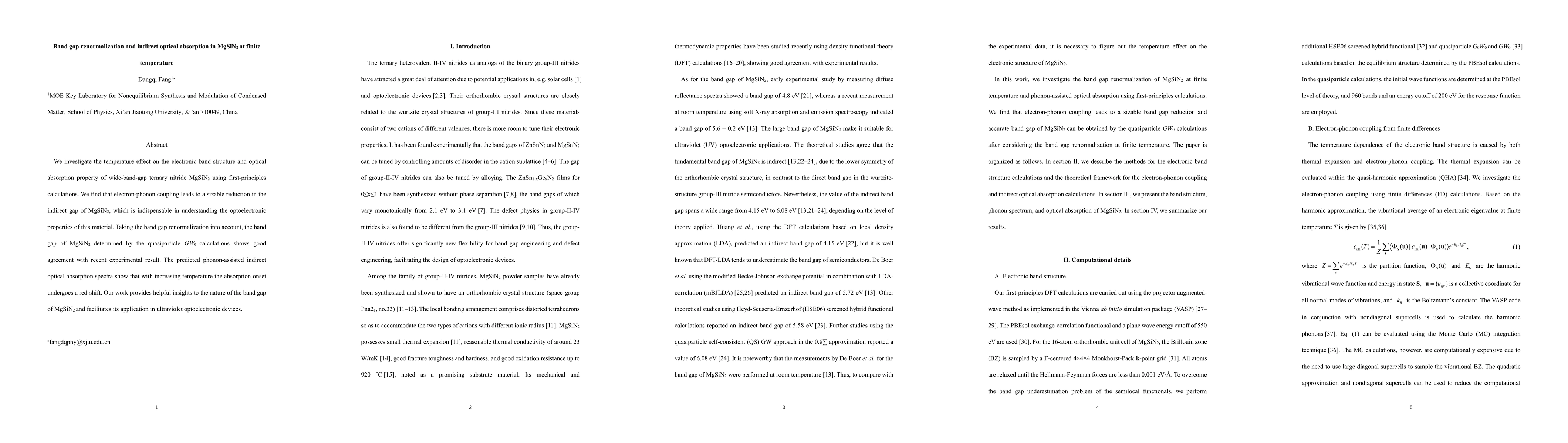 This study uses first-principles calculations to explore how temperature affects the electronic band structure and optical absorption in MgSiN$_2$. Electron-phonon coupling is found to significantly reduce the indirect band gap, crucial for understanding the material's optoelectronic properties. The research also predicts a red-shift in the absorption onset with increasing temperature, offering valuable insights for MgSiN$_2$ applications in ultraviolet optoelectronics.