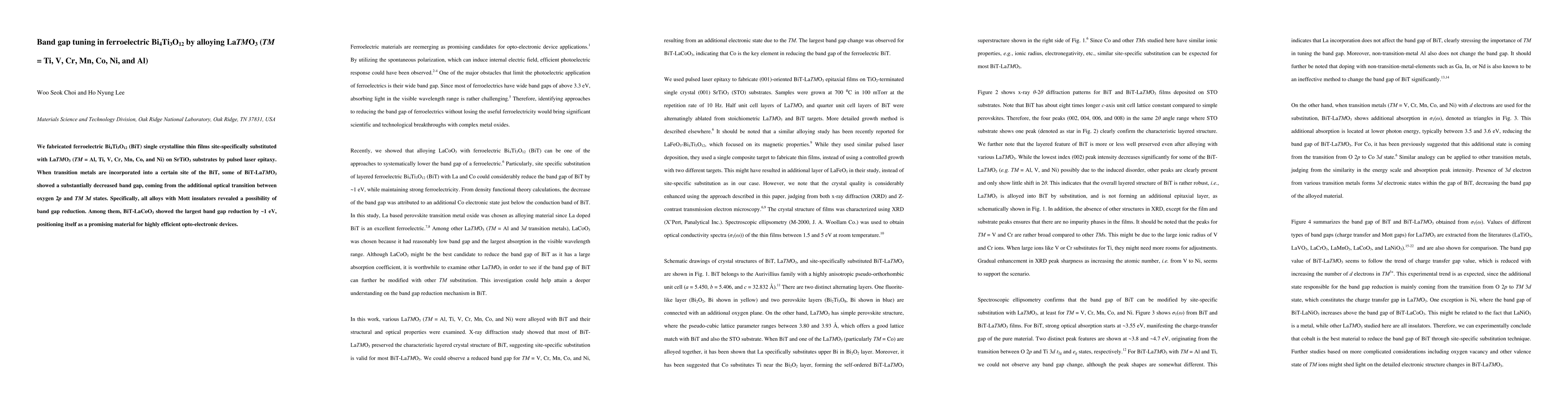 Researchers discovered that alloying Bi4Ti3O12 with certain transition metals like Co can reduce its band gap, making it a promising material for efficient opto-electronic devices. This is achieved through an additional optical transition between oxygen 2p and TM 3d states.