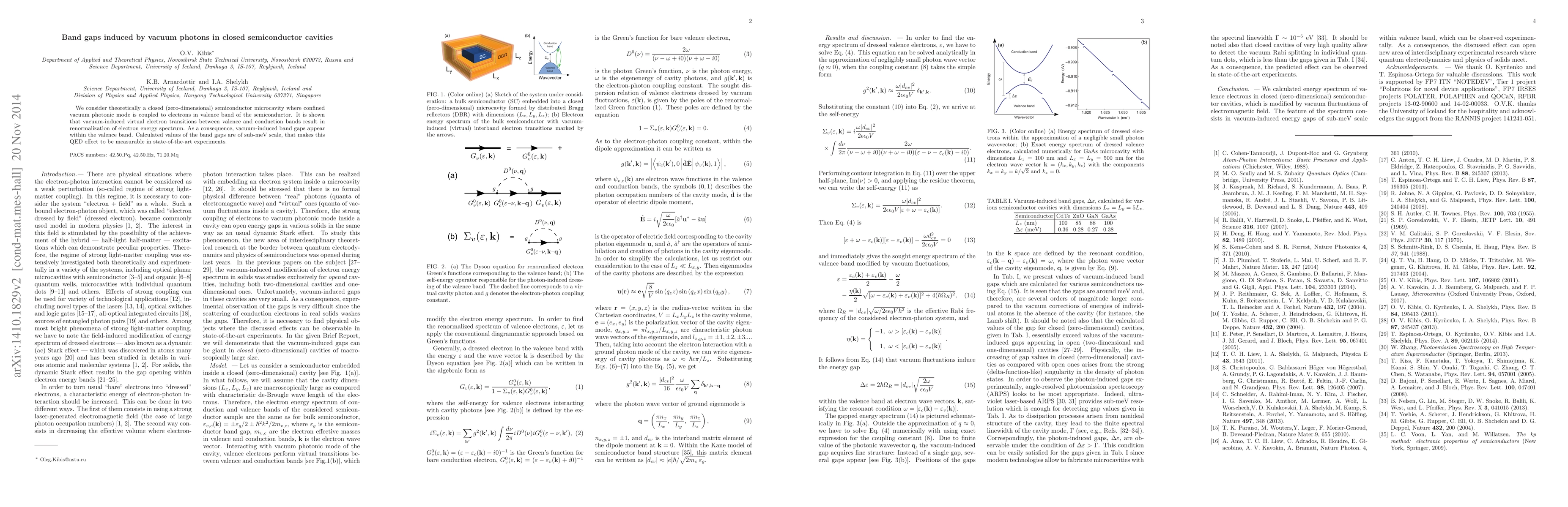 Theoretical research shows that vacuum photons can create band gaps in semiconductor microcavities, with calculated values of sub-meV scale, making this effect potentially measurable in experiments.