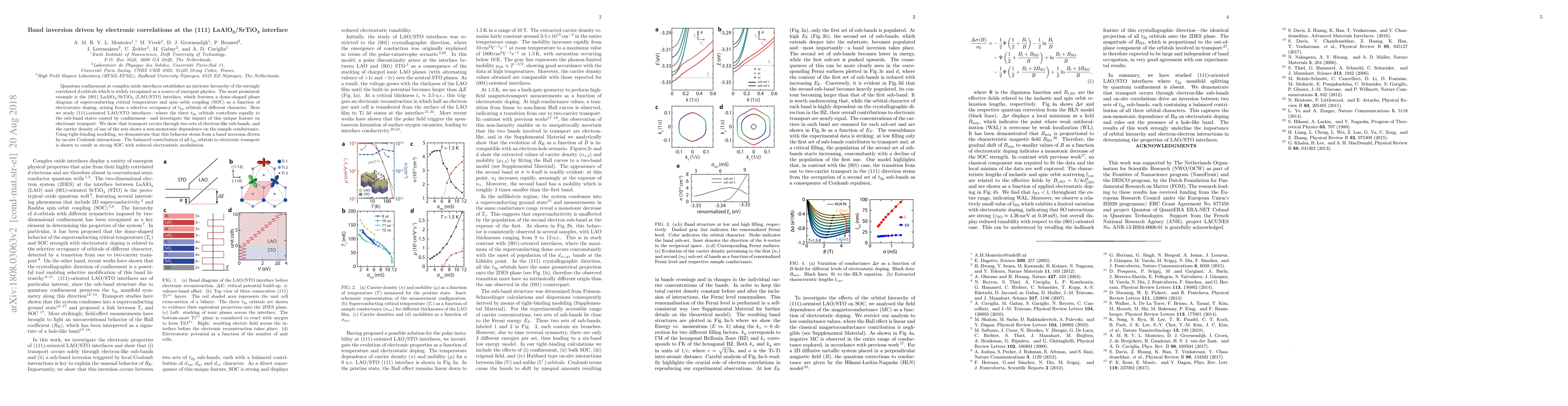 Researchers studied the (111) LaAlO$_3$/SrTiO$_3$ interface, discovering a band inversion driven by electronic correlations that leads to strong spin-orbit coupling and reduced electrostatic modulation.