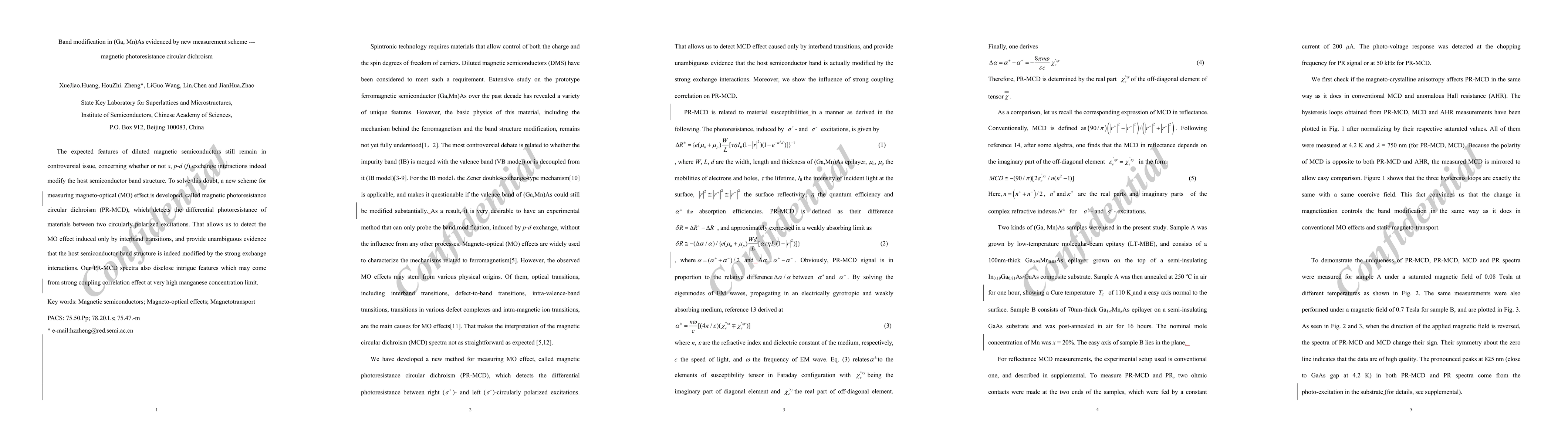 The expected features of diluted magnetic semiconductors still remain in controversial issue, concerning whether or not s, p-d (f) exchange interactions indeed modify the host semiconductor band structure. To solve this doubt, a new scheme for measuring magneto-optical (MO) effect is developed, called magnetic photoresistance circular dichroism (PR-MCD), which detects the differential photoresistance of materials between two circularly polarized excitations. That allows us to detect the MO effect induced only by interband transitions, and provide unambiguous evidence that the host semiconductor band structure is indeed modified by the strong exchange interactions. Our PR-MCD spectra also disclose intrigue features which may come from strong coupling correlation effect at very high manganese concentration limit.