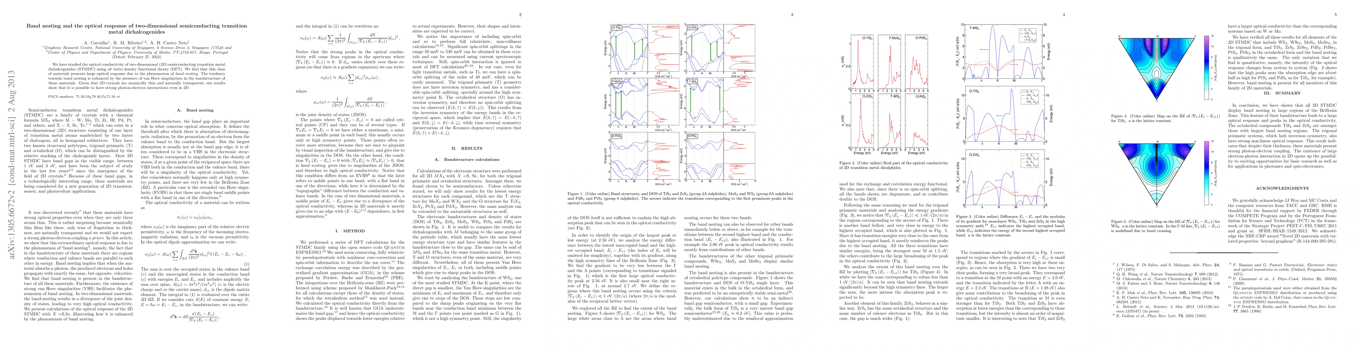 This study employs ab-initio DFT to investigate the optical conductivity of 2D semiconducting transition metal dichalcogenides, revealing that significant optical response arises from band nesting, further intensified by van Hove singularities, making these materials effective for photon-electron interactions despite their atomic thickness.