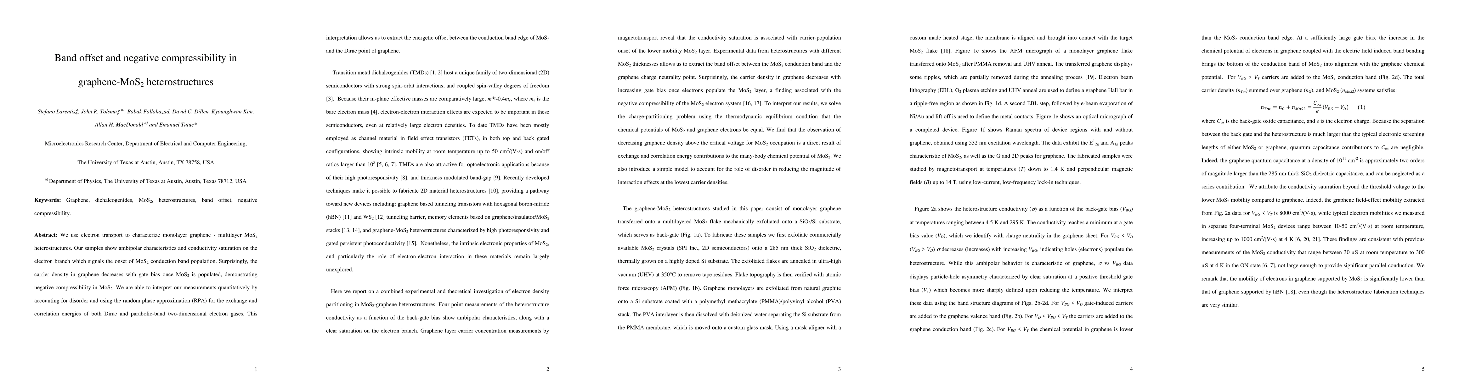 This study investigates monolayer graphene-multilayer MoS2 heterostructures, revealing ambipolar transport and conductivity saturation due to MoS2 conduction band population. Surprisingly, the carrier density in graphene decreases with gate bias, indicating negative compressibility in MoS2, which is explained quantitatively using disorder considerations and the random phase approximation to determine the band offset between MoS2 and graphene.