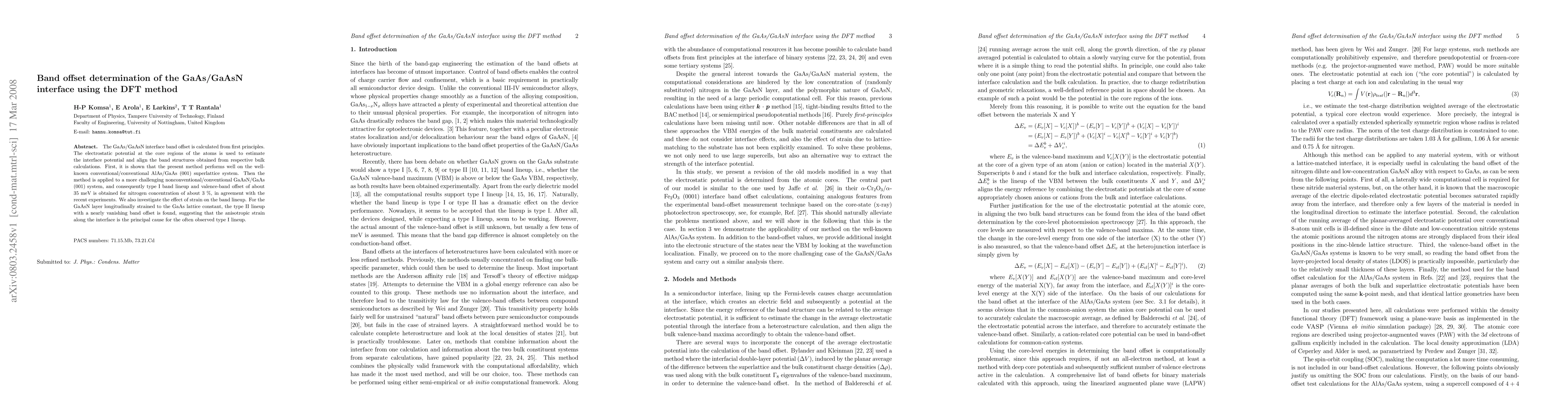Researchers used computational methods to determine the GaAs/GaAsN interface band offset, finding a type I lineup of about 35 meV at 3% nitrogen concentration, with strain affecting the lineup's nature.