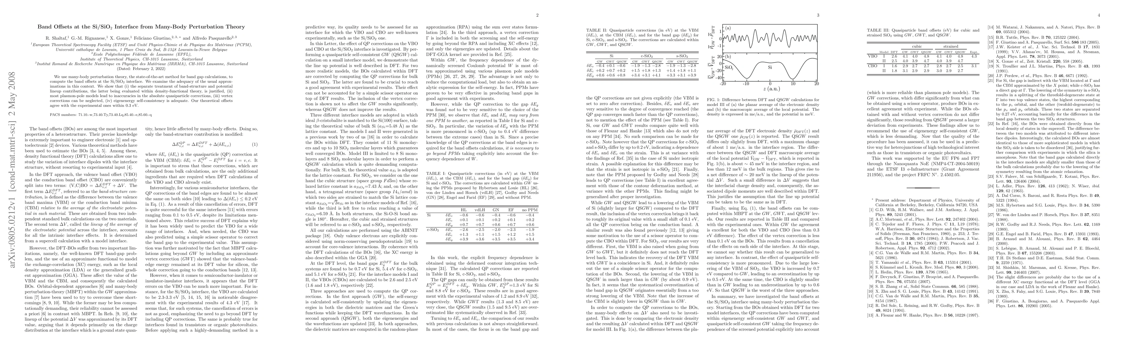 Researchers used many-body perturbation theory to calculate band offsets at the Si/SiO2 interface, finding that their theoretical results agree with experimental values within 0.3 eV.