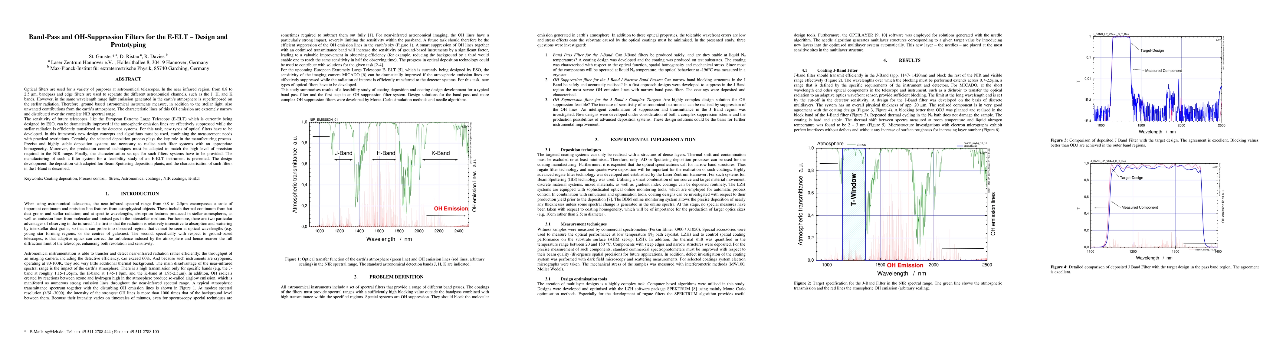 This paper discusses the design and prototyping of band-pass and OH-suppression filters for the E-ELT to enhance its sensitivity in the near-infrared range by effectively filtering out atmospheric emission lines while allowing stellar radiation to reach the detector. The study details the development of new optical filter systems, the use of Ion Beam Sputtering for precise deposition, and the characterization of these filters in the J-Band.