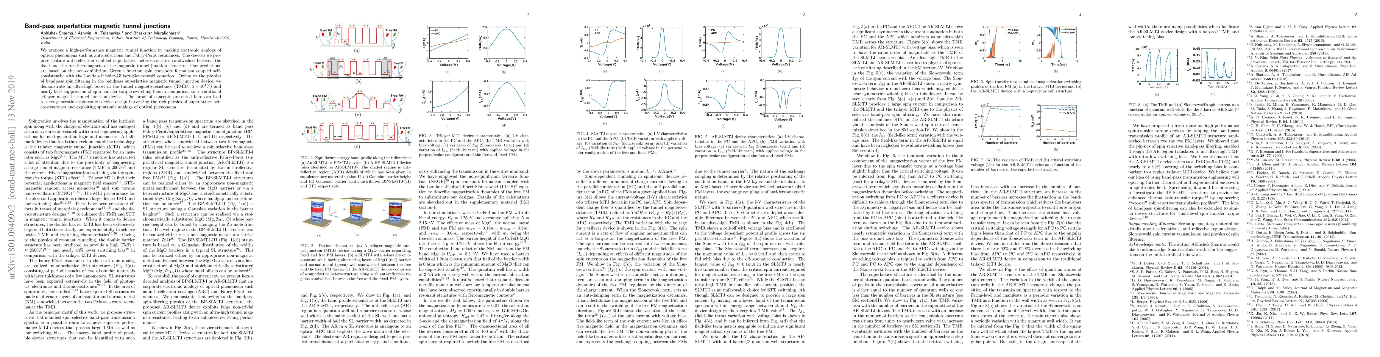 The paper introduces a bandpass superlattice magnetic tunnel junction design that leverages spin-dependent bandpass filtering for enhanced TMR and reduced switching bias, utilizing a combination of non-equilibrium Green's function spin transport and Landau-Lifshitz-Gilbert-Slonczewski magnetization dynamics simulations.