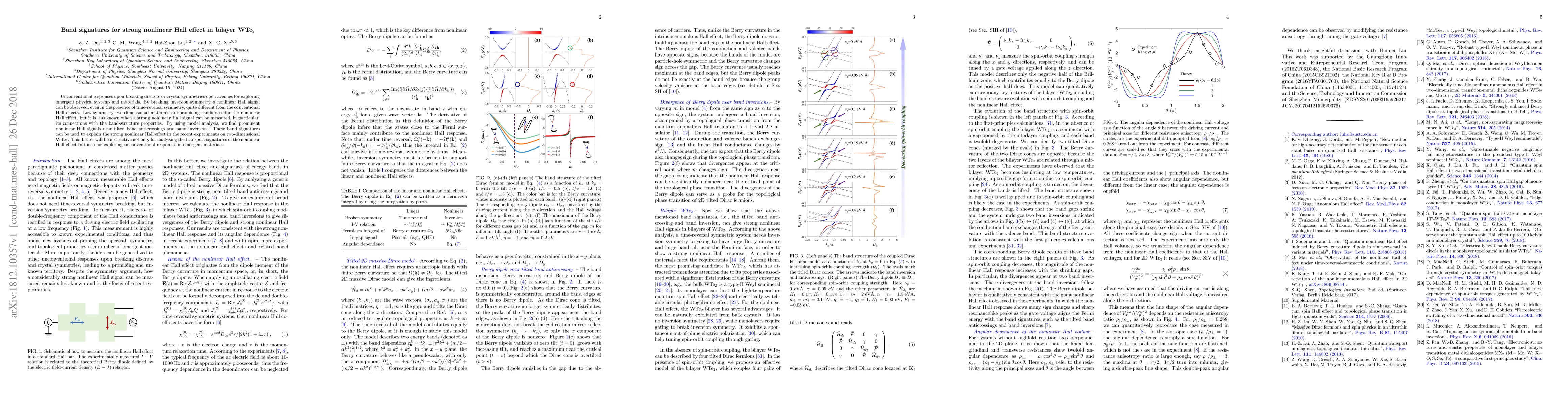 Unconventional responses upon breaking discrete or crystal symmetries open avenues for exploring emergent physical systems and materials. By breaking inversion symmetry, a nonlinear Hall signal can be observed, even in the presence of time-reversal symmetry, quite different from the conventional Hall effects. Low-symmetry two-dimensional materials are promising candidates for the nonlinear Hall effect, but it is less known when a strong nonlinear Hall signal can be measured, in particular, its connections with the band-structure properties. By using model analysis, we find prominent nonlinear Hall signals near tilted band anticrossings and band inversions. These band signatures can be used to explain the strong nonlinear Hall effect in the recent experiments on two-dimensional WTe$_{2}$. This Letter will be instructive not only for analyzing the transport signatures of the nonlinear Hall effect but also for exploring unconventional responses in emergent materials.
