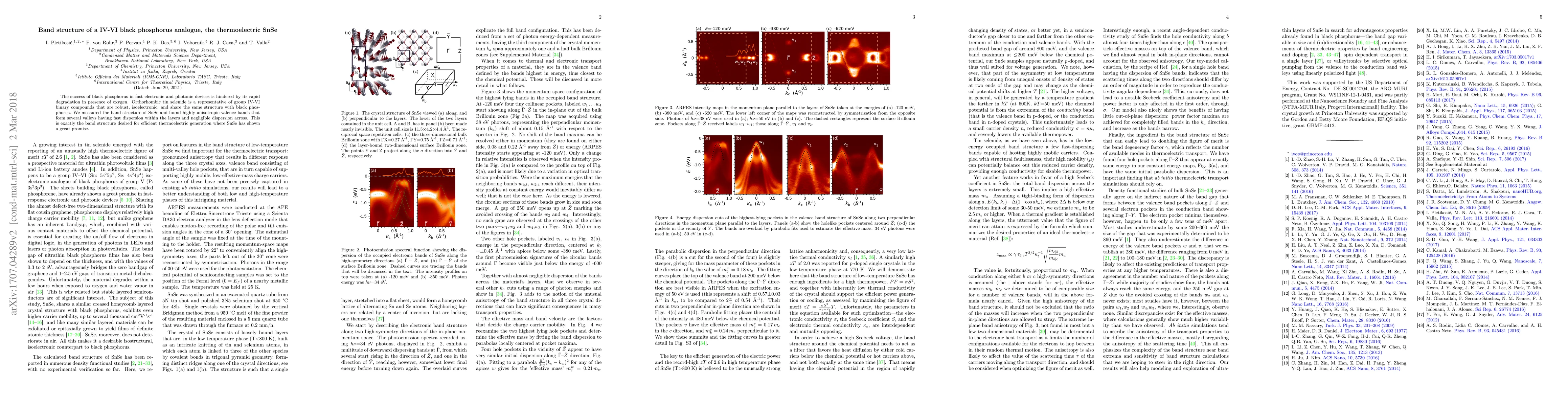 SnSe, a robust IV-VI black phosphorus analogue, exhibits highly anisotropic valence bands with fast dispersion within layers, promising efficient thermoelectric generation despite its structural similarity to degrading black phosphorus.
