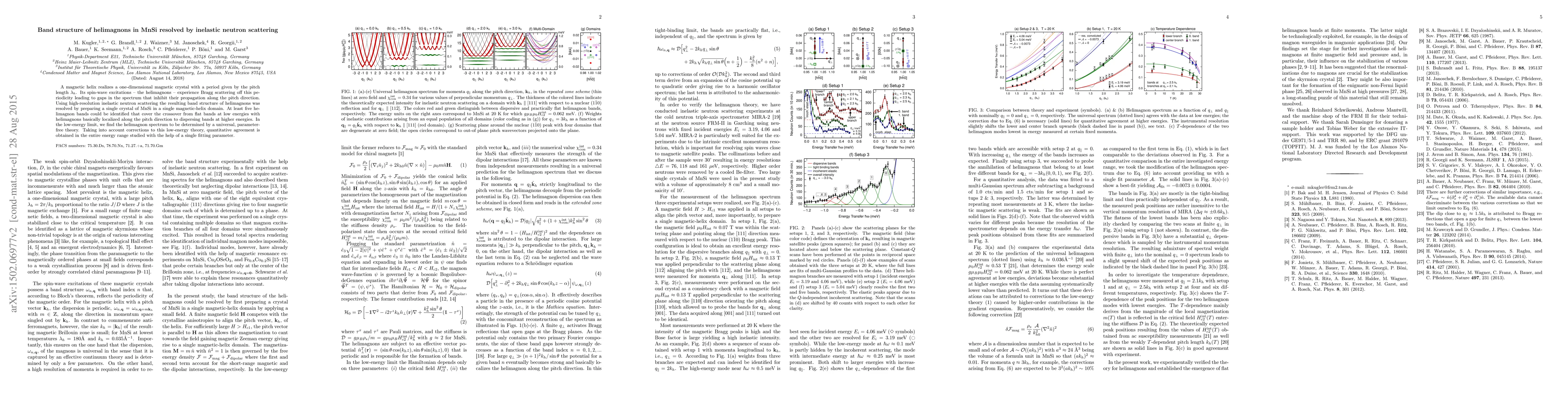 Researchers used inelastic neutron scattering to study the band structure of helimagnons in MnSi, a material with a magnetic helix, revealing five distinct bands that cover the transition from localized to dispersing behavior.