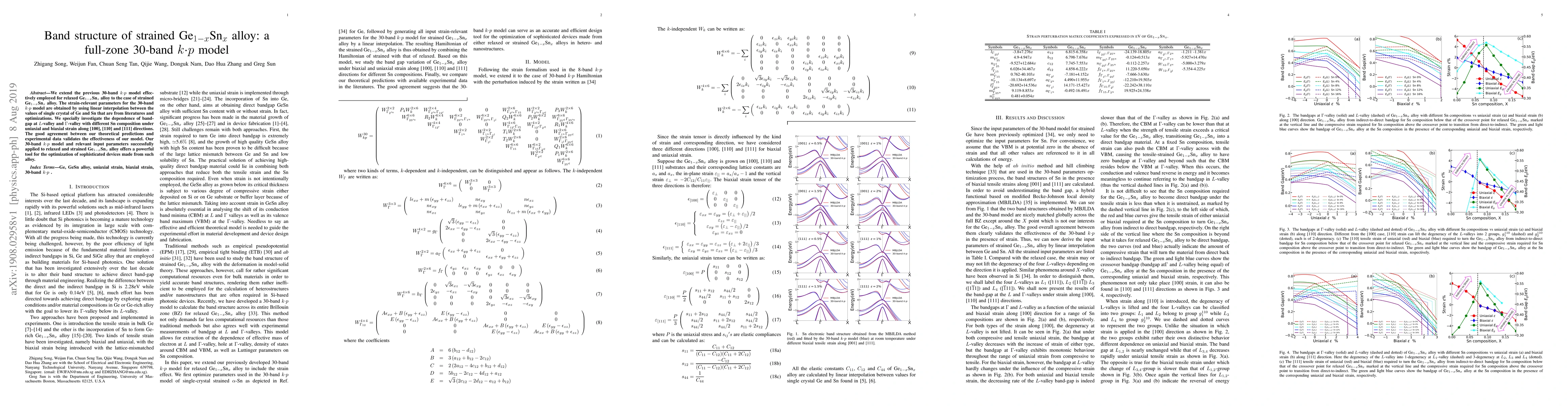 This paper extends a 30-band $k\cdot p$ model to analyze the band structure of strained Ge$_{1-x}$Sn$_x$ alloy, using linear interpolation and optimization for strain-relevant parameters. The model accurately predicts the band-gap variations under different strains, validating its effectiveness for optimizing devices made from this alloy.