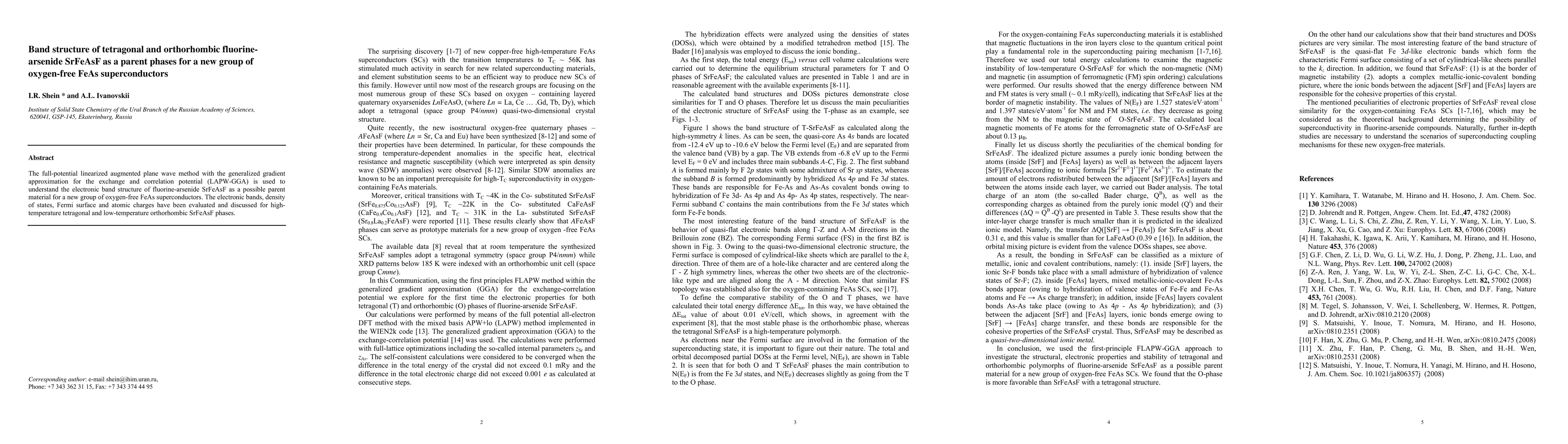 This study employs LAPW-GGA to analyze the electronic band structure of SrFeAsF, identifying it as a potential parent phase for oxygen-free FeAs superconductors. The research evaluates the electronic bands, density of states, Fermi surface, and atomic charges for both tetragonal and orthorhombic phases.