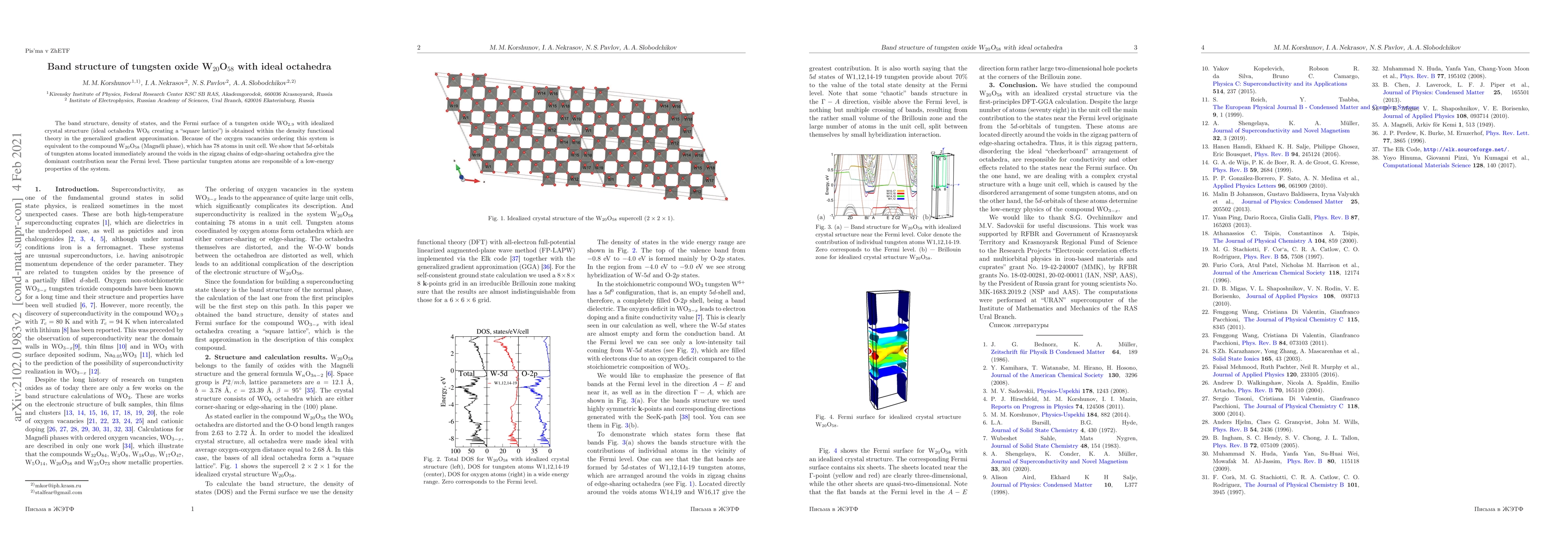 Researchers studied tungsten oxide WO$_{2.9}$ with ideal octahedra structure using density functional theory, finding that 5$d$-orbitals of tungsten atoms near oxygen vacancies contribute to low-energy properties.