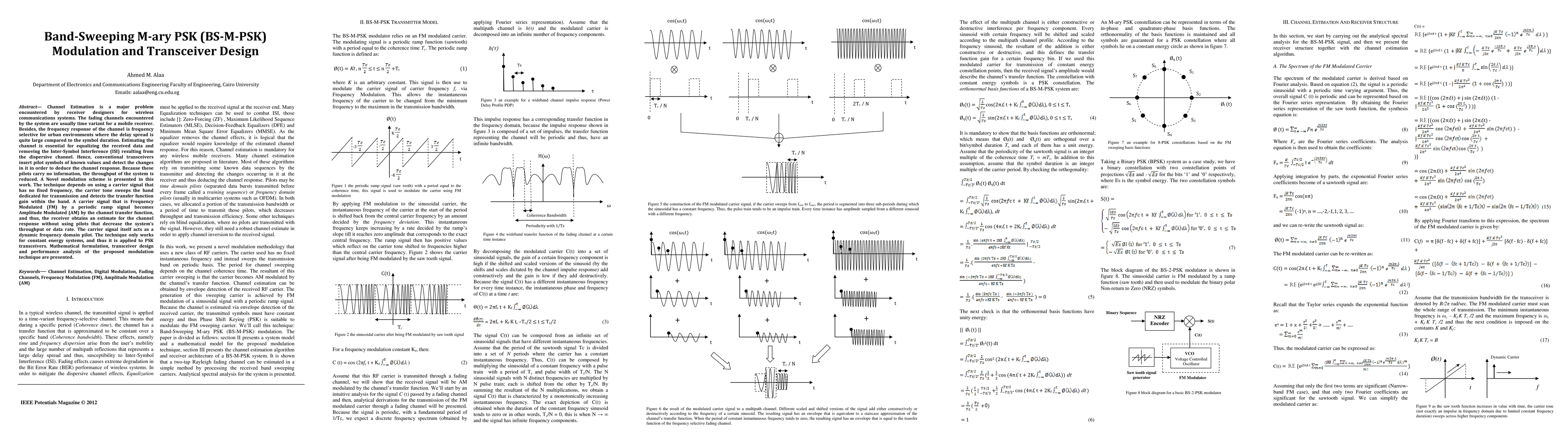 This paper proposes a novel Band-Sweeping M-ary PSK (BS-M-PSK) modulation technique that estimates the channel response without using pilot symbols, thereby improving system throughput. The dynamic frequency sweeping carrier signal acts as a built-in pilot, eliminating Inter-Symbol Interference (ISI) without sacrificing data rate.