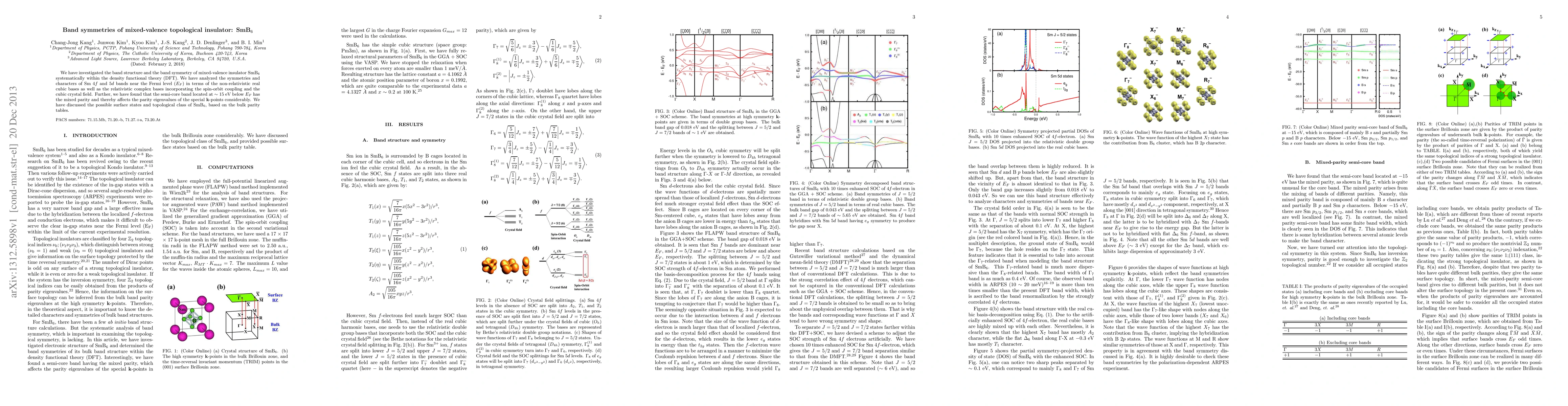 Researchers studied the band structure and symmetry of SmB6 using density functional theory, finding a semi-core band with mixed parity that affects its topological class.